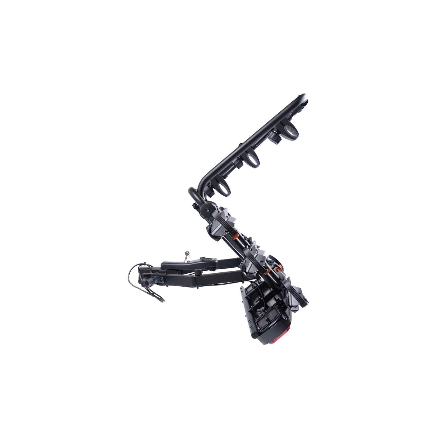 System odchylania pozwala na dostęp do bagażnika auta bez konieczności zdejmowania rowerów. Całość uzupełniają zabezpieczenia antykradzieżowe oraz oświetlenie spełniające wymagania drogowe, co zwiększa bezpieczeństwo w trakcie podróży.