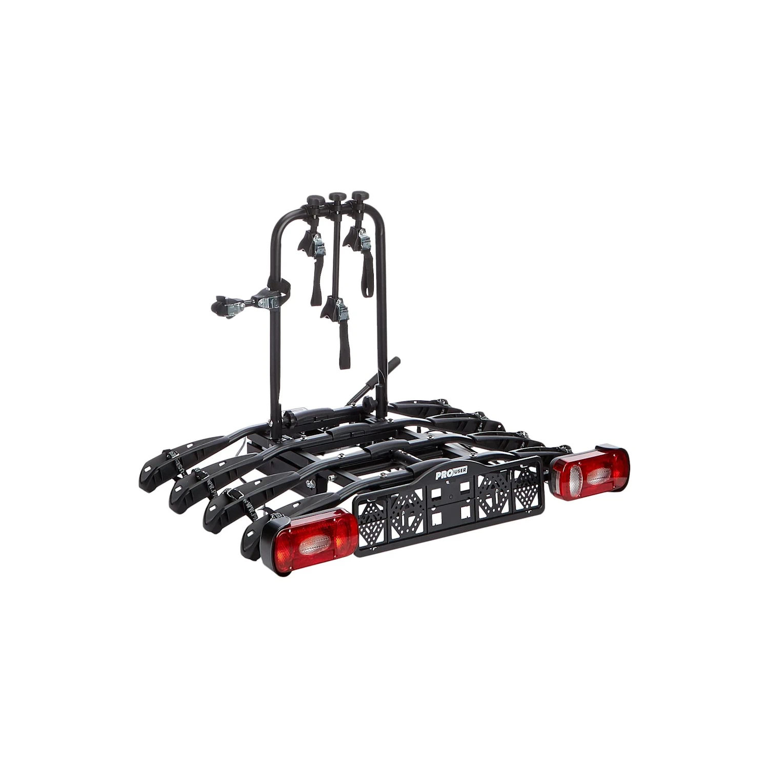 Pro-User Amber IV to bagażnik rowerowy na hak umożliwiający transport czterech rowerów. bagażnik rowerowy na hak łączy funkcjonalność z atrakcyjną ceną.