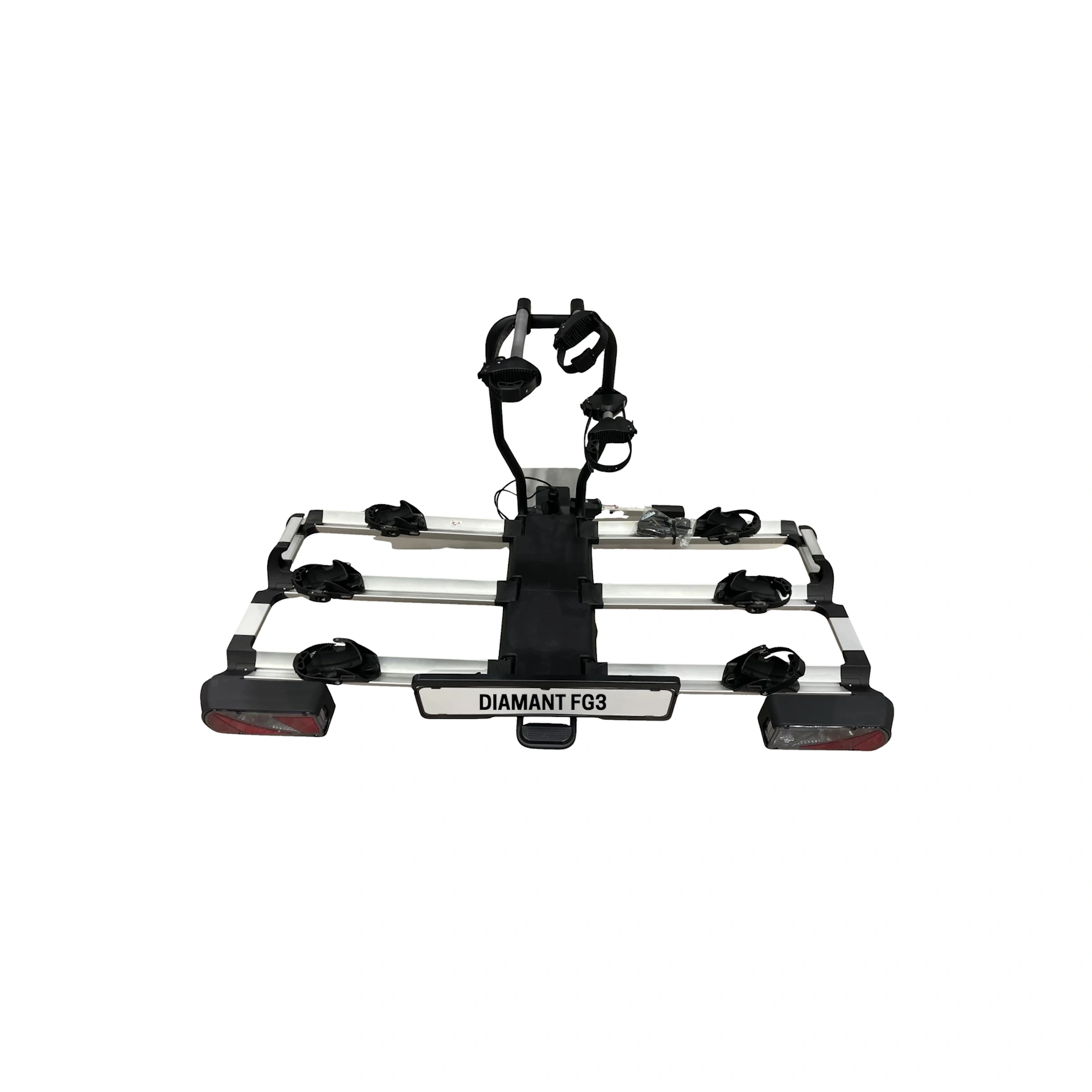 System odchylania umożliwia dostęp do bagażnika samochodu bez konieczności zdejmowania rowerów, a szybkozłącze pozwala sprawnie zamocować platformę na haku. Stabilne podpory oraz mocowanie za ramę zapewniają bezpieczny transport.