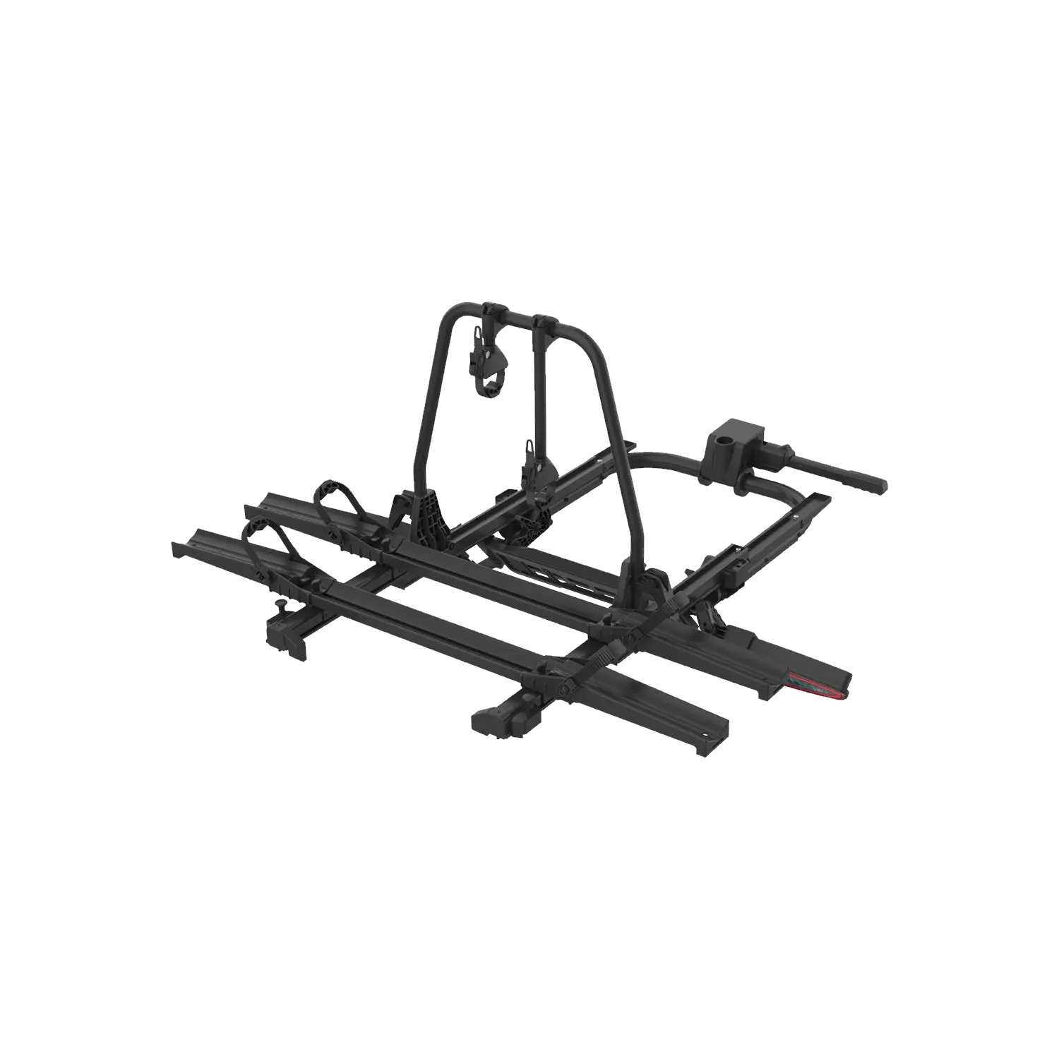 Stabilna konstrukcja oraz szerokie podpory kół zapewniają pewne trzymanie rowerów podczas jazdy. Całość została zaprojektowana tak, aby dobrze radzić sobie z różnymi typami rowerów, a przy tym pozostać wygodną w przechowywaniu po złożeniu.