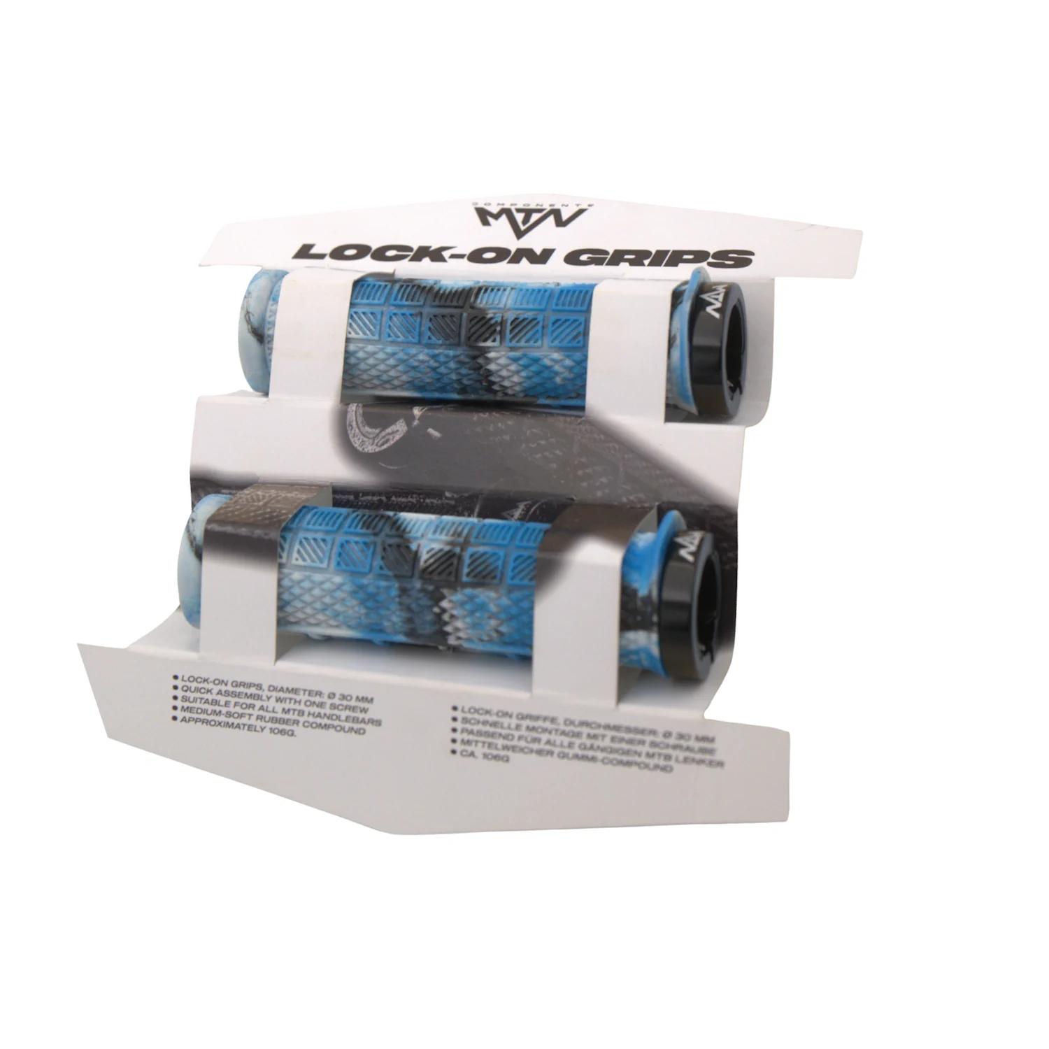MTN Components zastosowało trwałą i elastyczną mieszankę gumy, która zapewnia dobrą przyczepność oraz odporność na zużycie. Konstrukcja z lamelami zwiększa kontrolę nad rowerem, szczególnie na wymagających trasach. System lock-on zapobiega obracaniu się gripów i gwarantuje pewne osadzenie na kierownicy.