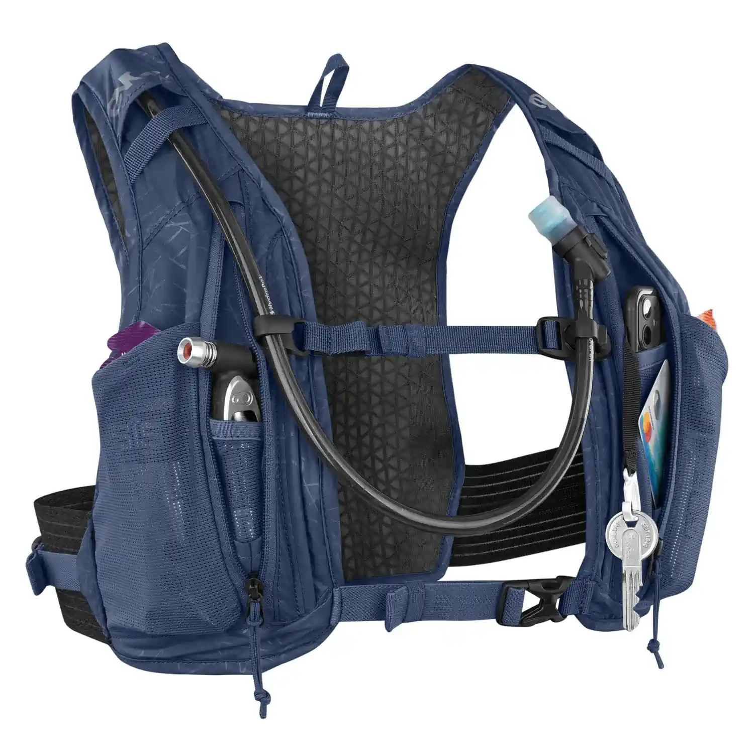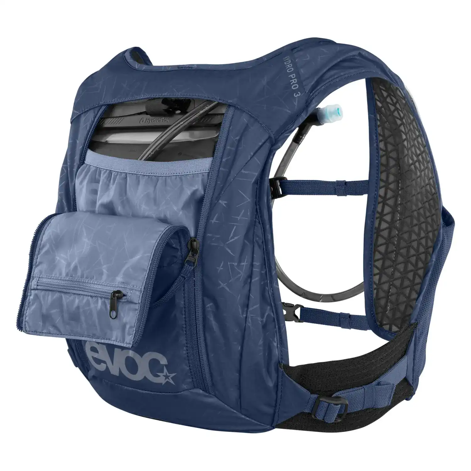 EVOC Hydro Pro 3 + 1.5L to profesjonalny plecak rowerowy zaprojektowany z myślą o długich i wymagających trasach MTB. Jego konstrukcja przypomina kamizelkę – przylega do ciała, nie przesuwa się i nie ogranicza ruchów, co czyni go idealnym wyborem dla ambitnych rowerzystów.