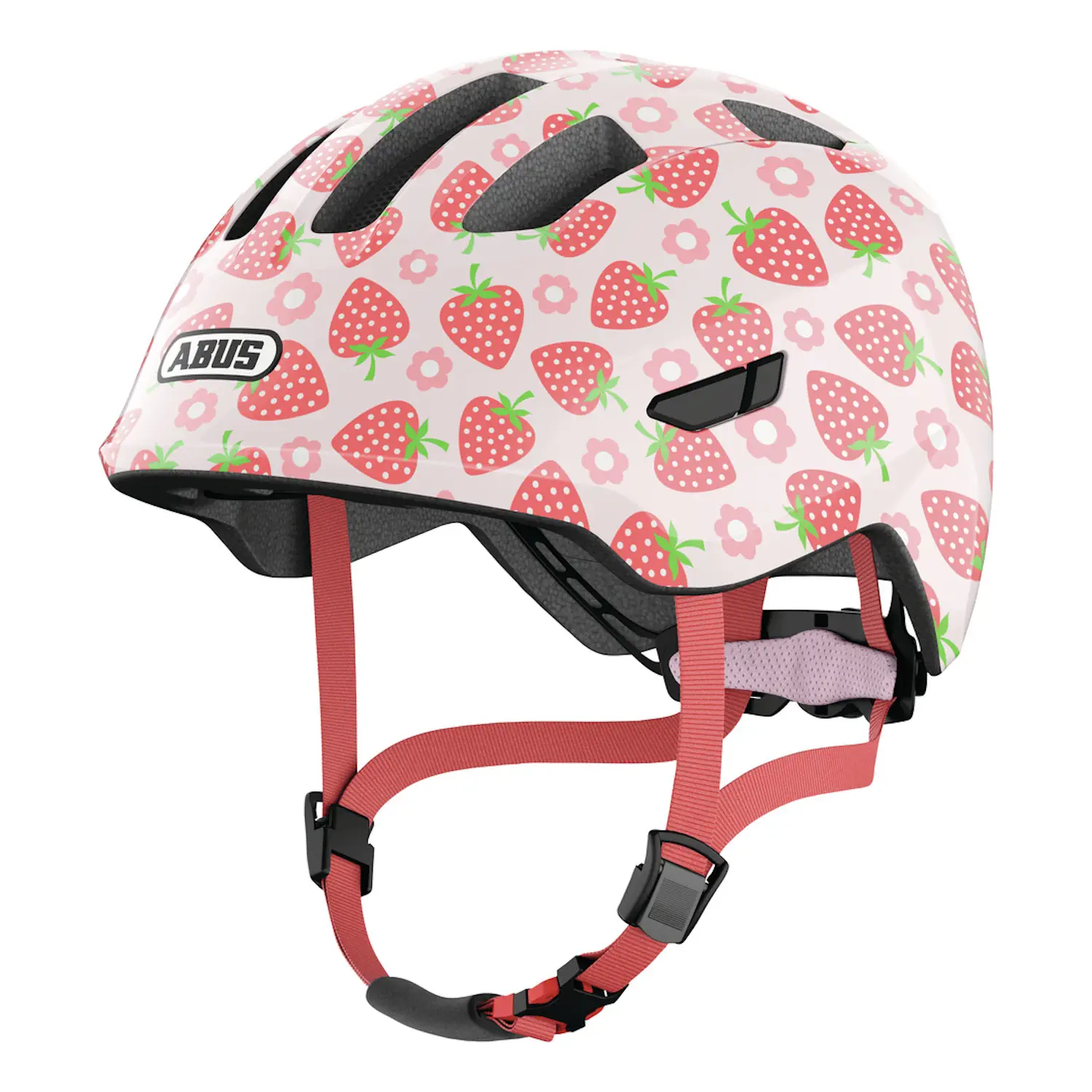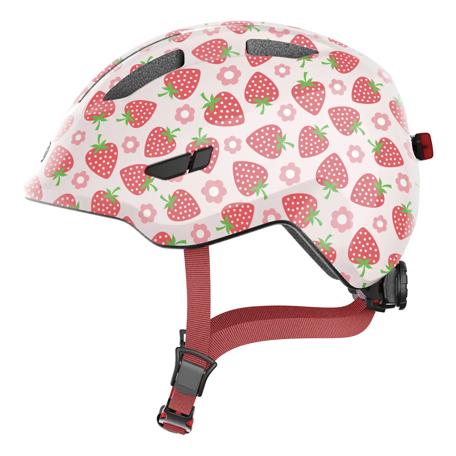 | Więcej o produkcie | Kask rowerowy dziecięcy Abus Smiley 3.0 LED rose strawberry M |
