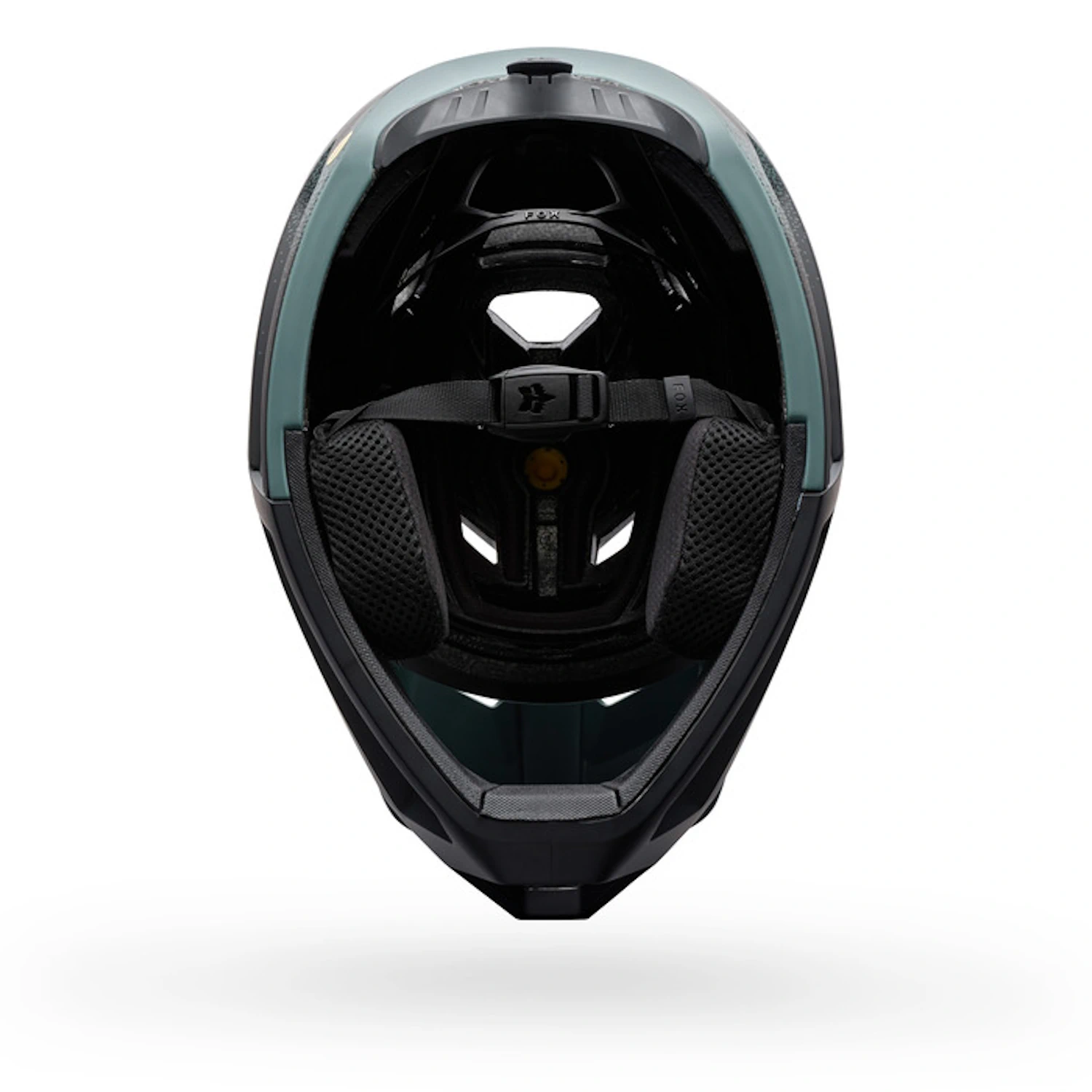 Kask rowerowy FOX Proframe RS Aura sage to zaawansowany model full-face łączący nowoczesne technologie ochronne z lekką konstrukcją. Wyposażony w system BOA®, technologię MIPS Integra Split i certyfikację DH – zapewnia dopasowanie, bezpieczeństwo i komfort na poziomie pro.