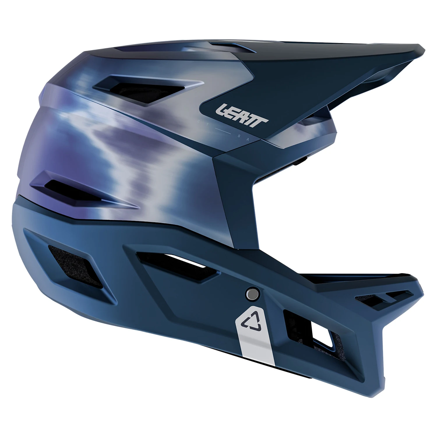 Kask rowerowy full face LEATT Helmet MTB Gravity 4.0 V26 Galaxy Blue L to zaawansowany kask MTB full face stworzony do jazdy enduro, bike park i downhill. Model posiada pełną certyfikację ASTM DH, zapewniając wysoki poziom ochrony podczas najbardziej wymagających zjazdów. System 360° Turbine redukuje siły rotacyjne działające na głowę, zwiększając bezpieczeństwo podczas upadku.