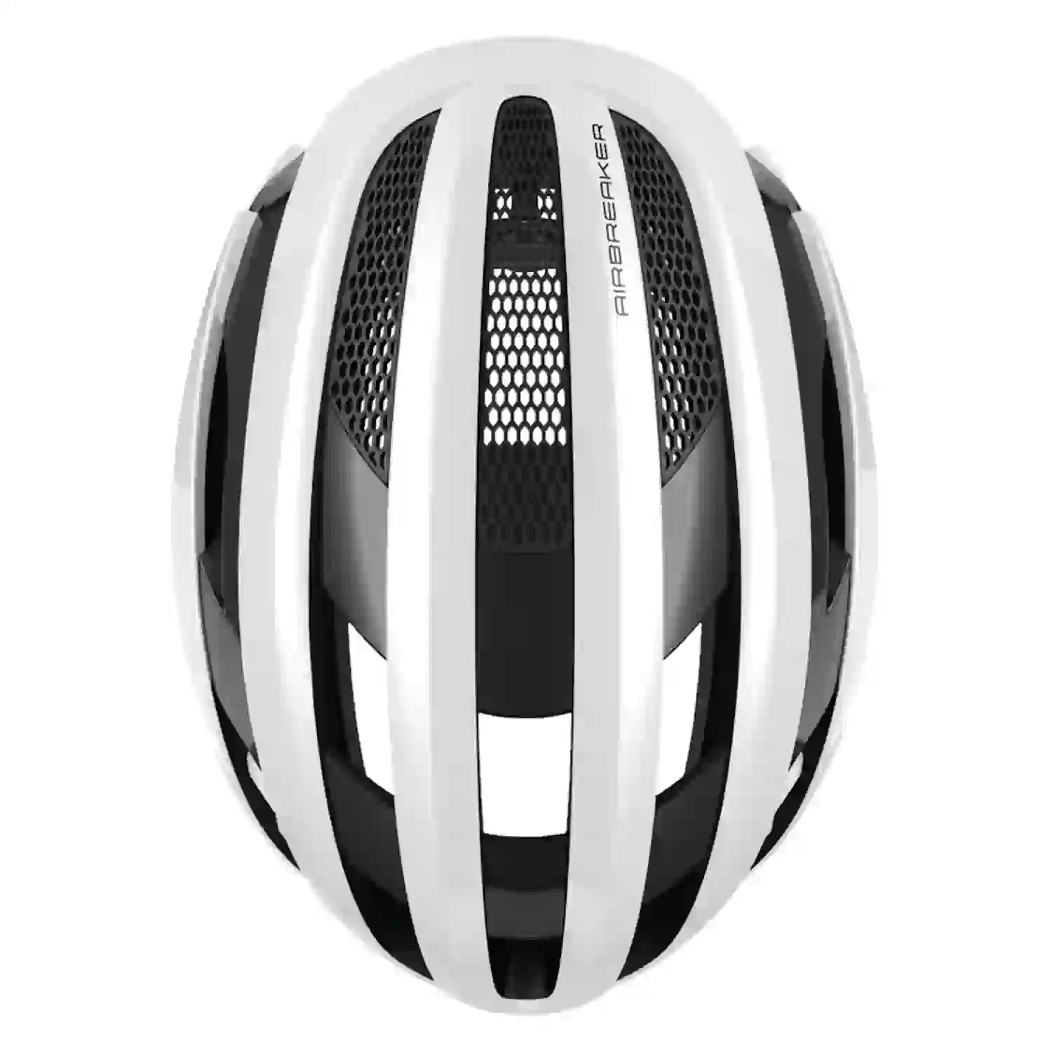 Kask Abus AirBreaker powstał we współpracy z zawodowymi kolarzami i jest w całości produkowany we Włoszech. Dzięki technologii In-Mold, pianka EPS jest trwale zespolona z poliwęglanową skorupą zewnętrzną, co zapewnia maksymalną ochronę przy niskiej wadze. Model ten wyposażono w Floating Padding – wewnętrzną wyściółkę mocowaną punktowo, zwiększającą komfort i wentylację, oraz Flow Straps™ – płaskie, lekkie paski bez luźnych elementów.
