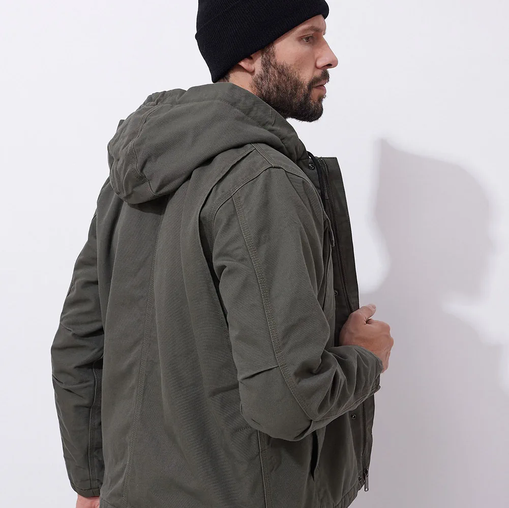 Carhartt Washed Duck Barlett Jacket Moss L to kurtka zimowa stworzona do ciężkich warunków, łącząca niezawodną trwałość i wygodę. Zewnętrzna tkanina Washed Duck chroni przed wiatrem i lekkim deszczem, a podszycie Sherpa dba o ciepło nawet w mroźne dni. Wzmocnienia Cordura® zwiększają odporność na przetarcia, a praktyczne kieszenie pozwalają wygodnie przechowywać niezbędne przedmioty. Krój Relaxed Fit i przedłużony tył zapewniają swobodę ruchów i dodatkową ochronę.