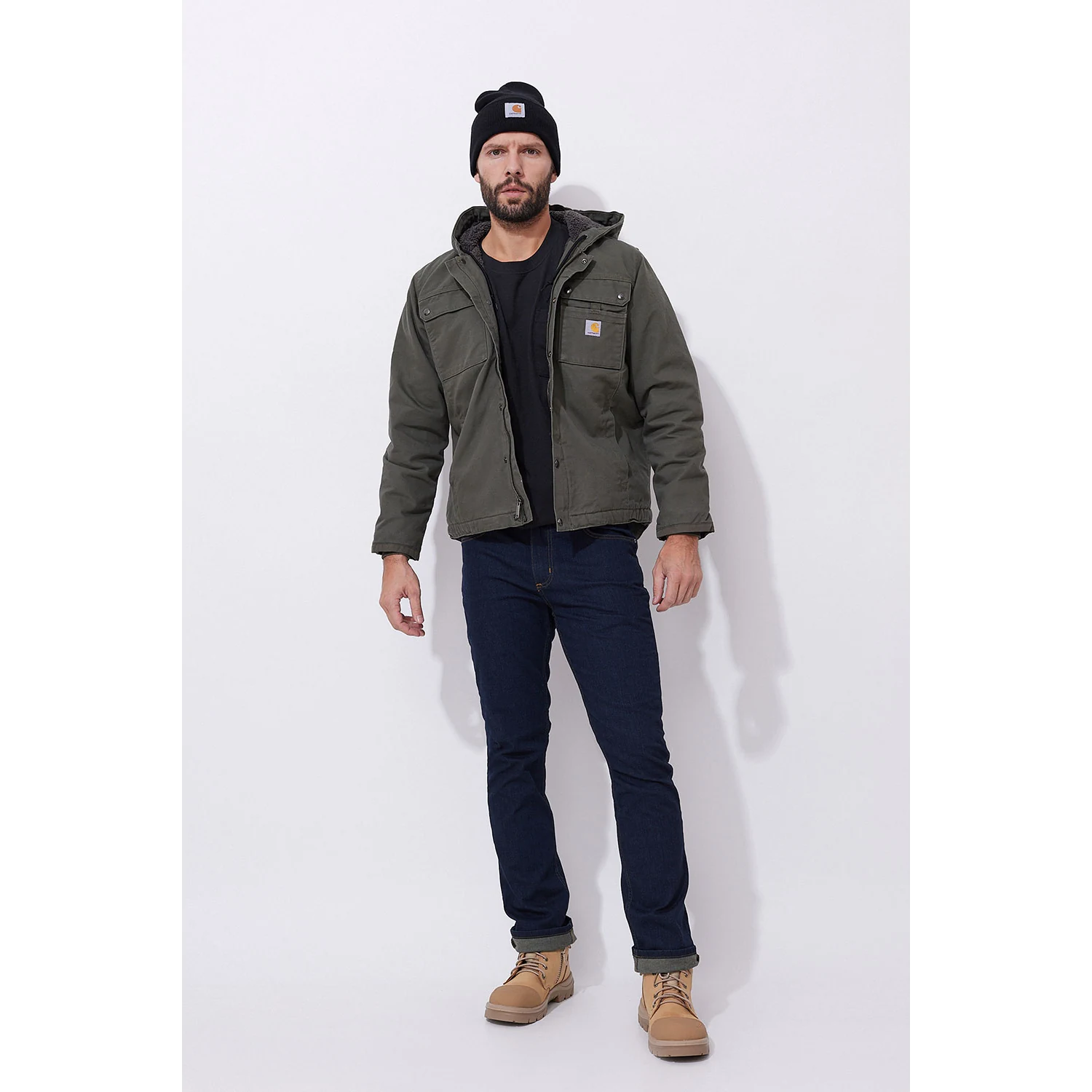 Washed Duck to ciężka, gęsto tkana bawełna o gramaturze 407 g/m², poddana procesowi zmiękczania dla większego komfortu. Sherpa gwarantuje doskonałe ocieplenie, a Cordura® na rękawach wzmacnia newralgiczne miejsca. Potrójne szwy Carhartt zapewniają niezrównaną wytrzymałość na lata użytkowania.