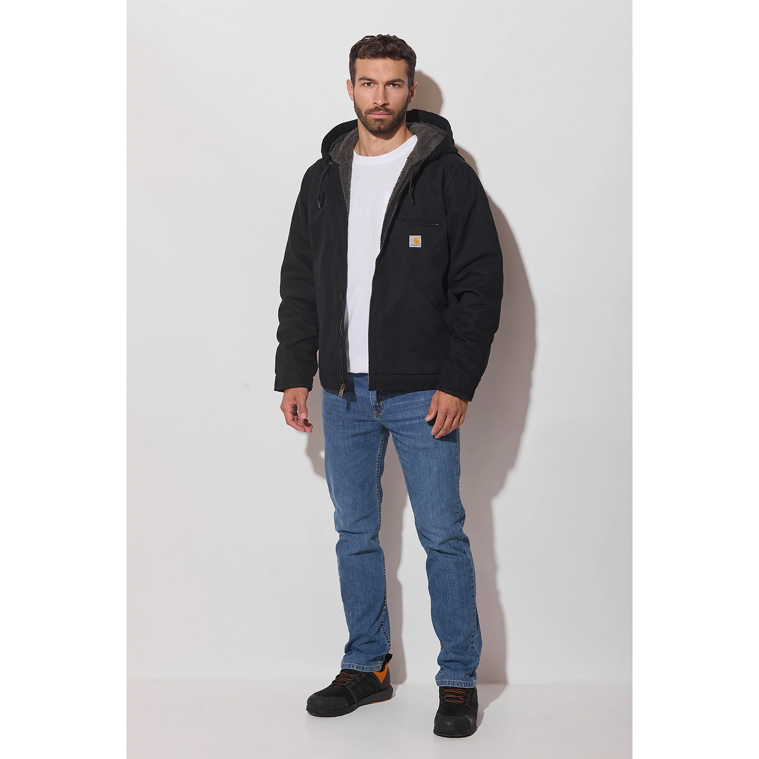 Carhartt Washed Duck Sierra Jacket Black M to zimowa kurtka, która łączy wytrzymałość i komfort. Ocieplenie Sherpa, kaptur oraz Cordura® zapewniają ciepło i ochronę nawet w najtrudniejszych warunkach.