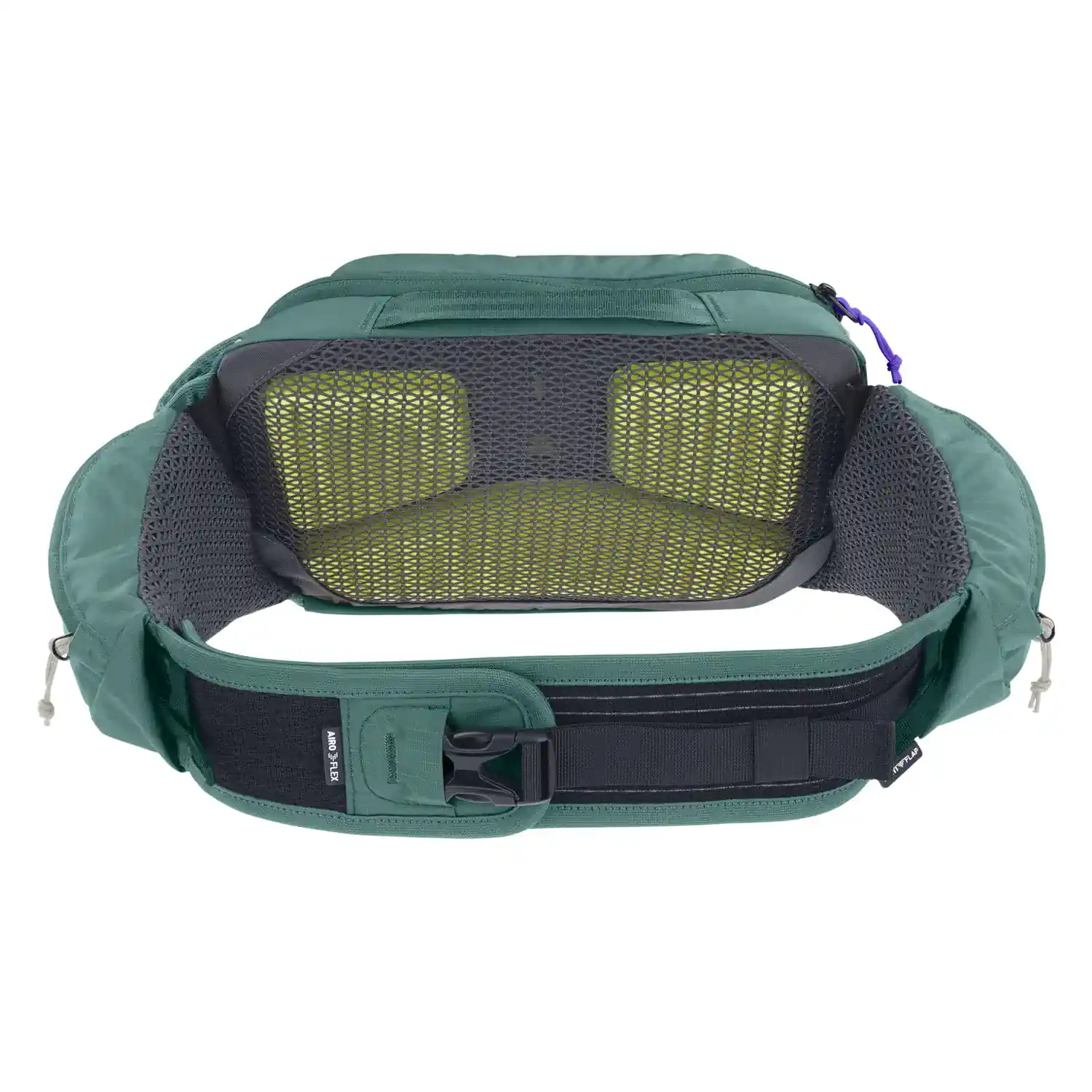 Extra Wide Hip Wings w połączeniu z elastycznym i wentylowanym pasem Aero Flex stabilizują torbę na biodrach, eliminując jej przesuwanie się. System Venti Flap umożliwia regulację stopnia przylegania torby, zapewniając komfort zarówno podczas podjazdów, jak i zjazdów.