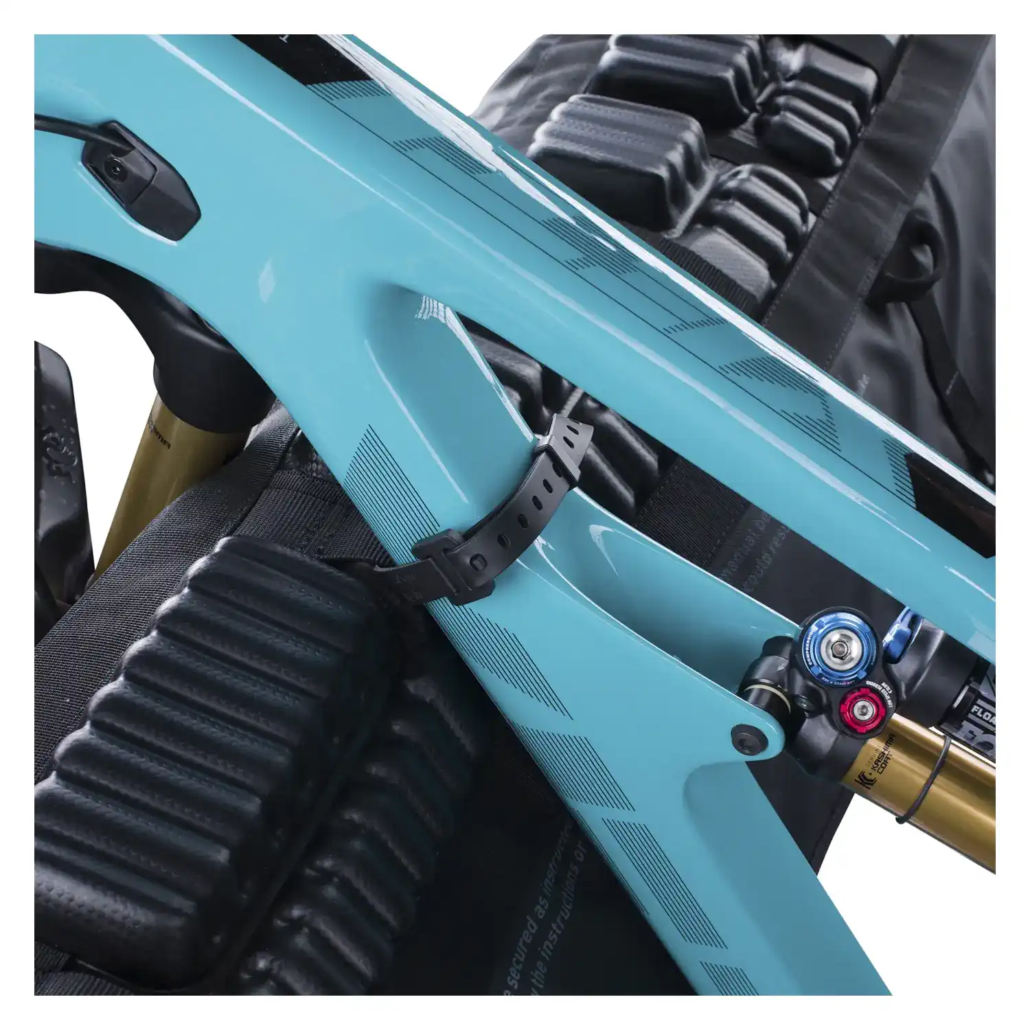 Pokrowiec EVOC Tailgate Pad wykonano z trwałej, wodoodpornej plandeki PU bez PVC, która zapewnia odporność na przecięcia, warunki atmosferyczne i promienie UV. Całość została starannie zaprojektowana z myślą o ochronie zarówno ram rowerowych, jak i lakieru klapy bagażnika.