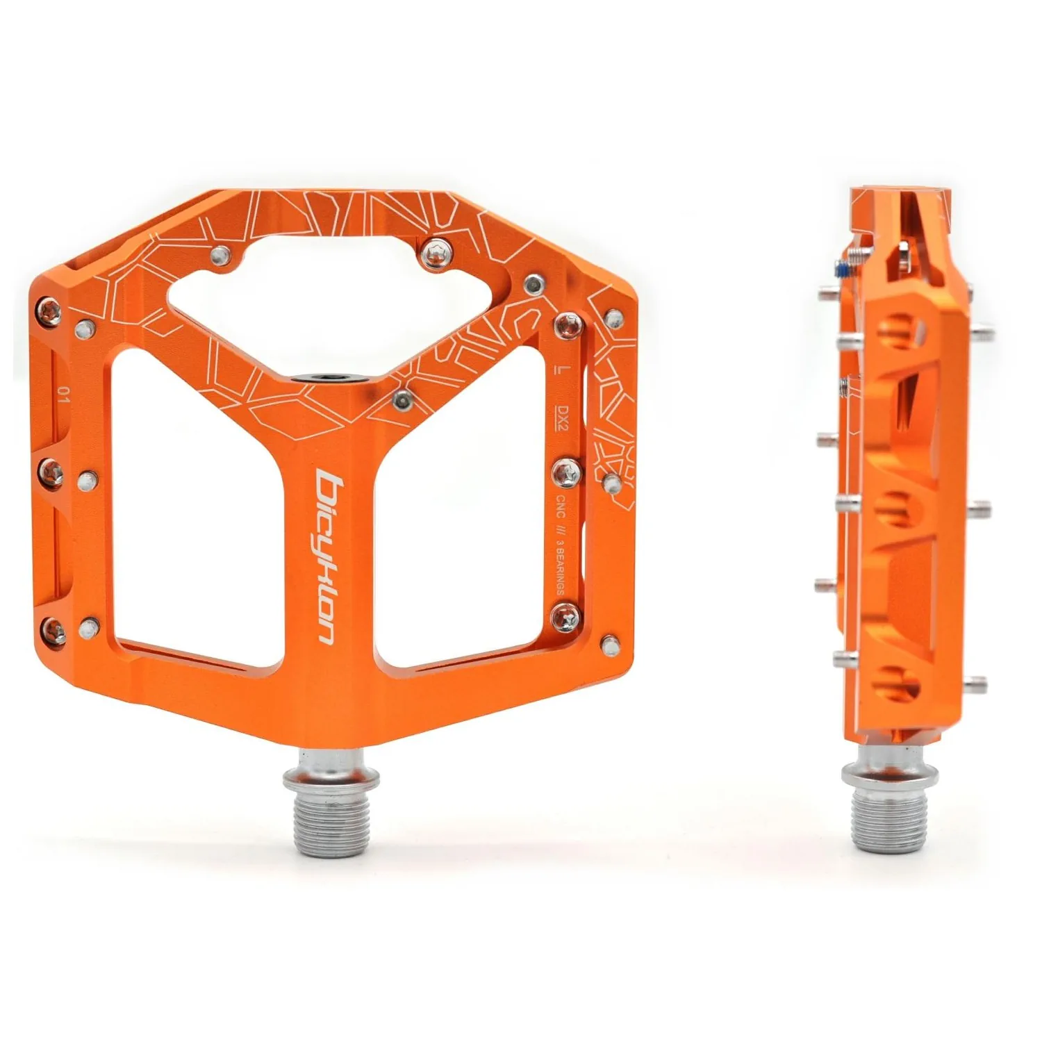 Pedały Bicyklon DX2 w intensywnym pomarańczowym kolorze to świetny wybór dla riderów, którzy cenią zarówno styl, jak i funkcjonalność. Poszerzona platforma i agresywne rozmieszczenie pinów zapewniają doskonałą kontrolę nad rowerem podczas podjazdów, zjazdów i skoków.