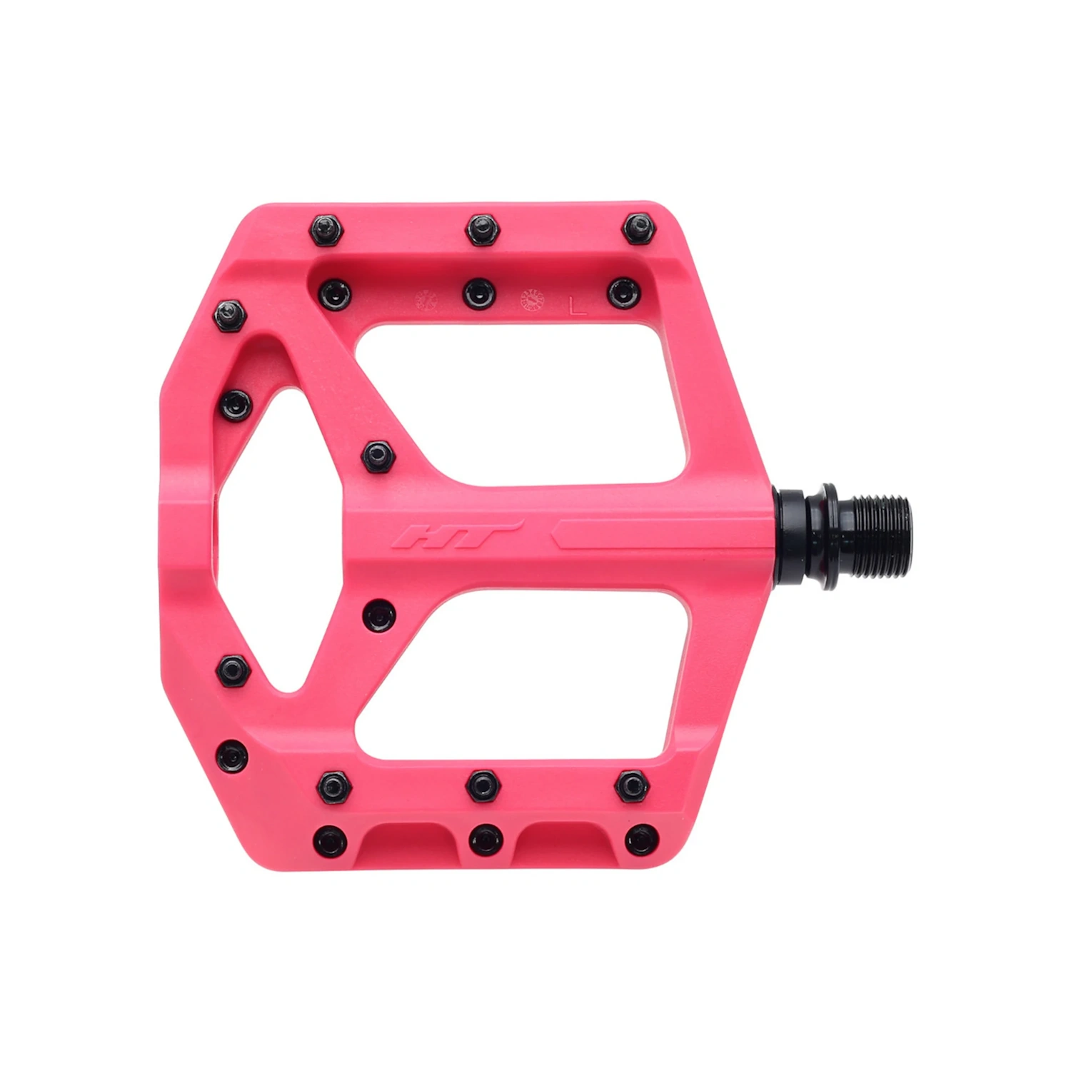 Pedały rowerowe HT-PA32A różowe to wytrzymałe pedały platformowe MTB stworzone do jazdy trail i enduro. Konstrukcja o szerokim profilu zapewnia stabilne ustawienie stopy, a solidne komponenty gwarantują niezawodność w wymagającym terenie.