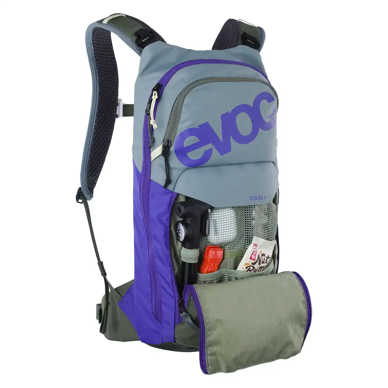 Plecak rowerowy Evoc Stage 6L steel-violet-dark olive to praktyczny i stylowy wybór dla wszystkich, którzy oczekują od plecaka czegoś więcej niż tylko pojemności. Z pojemnością 6 litrów pomieści wszystko, czego potrzebujesz na trasie, jednocześnie nie ograniczając Twojej swobody ruchów.