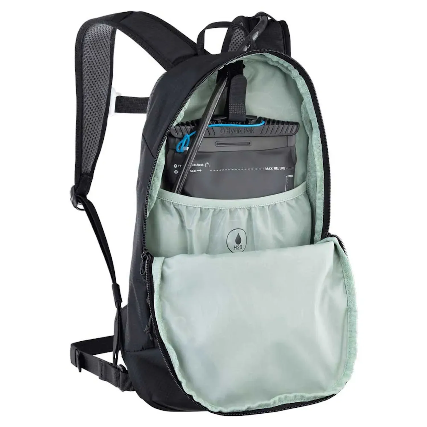 System wentylacji Evoc Air Tune pozwala zachować komfort nawet podczas intensywnych aktywności. Elementy odblaskowe zwiększają bezpieczeństwo na drodze, a przemyślana organizacja wnętrza ułatwia spakowanie wszystkiego, co niezbędne. W plecaku znajduje się miejsce na bukłak (do 2L), a także kieszenie na okulary, telefon, klucze czy lampkę.