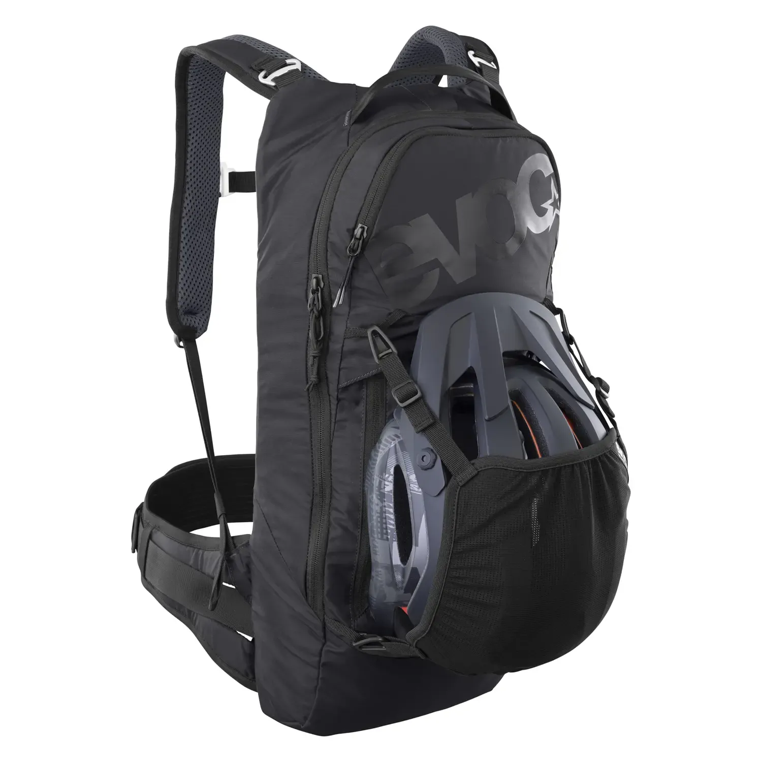 Evoc Trail Pro Blackline to również przemyślane detale: uchwyty na kask, lampkę i klucze, specjalna przegroda na bukłak (do 3L), pokrowiec przeciwdeszczowy i gwizdek bezpieczeństwa. Wszystko, czego potrzebujesz – w jednej, kompaktowej konstrukcji.