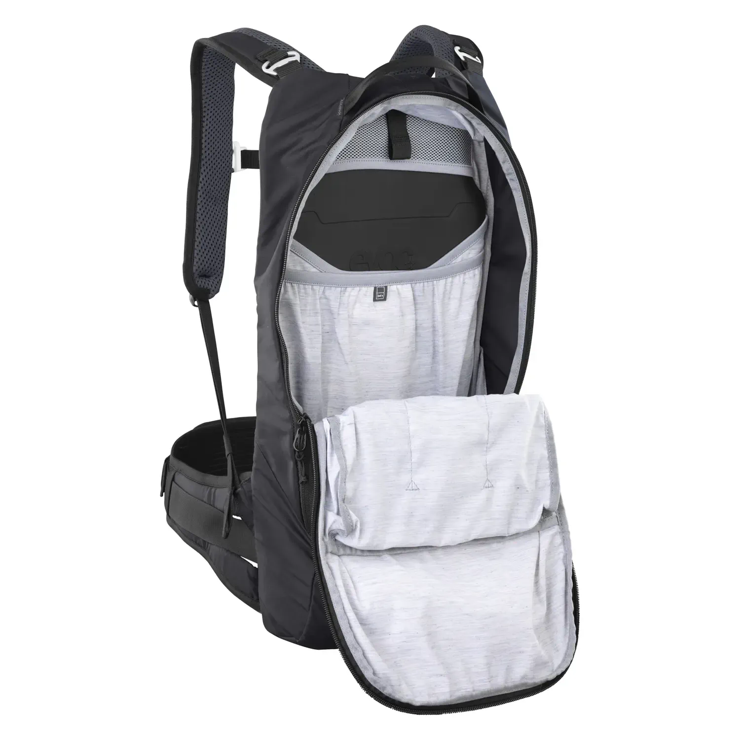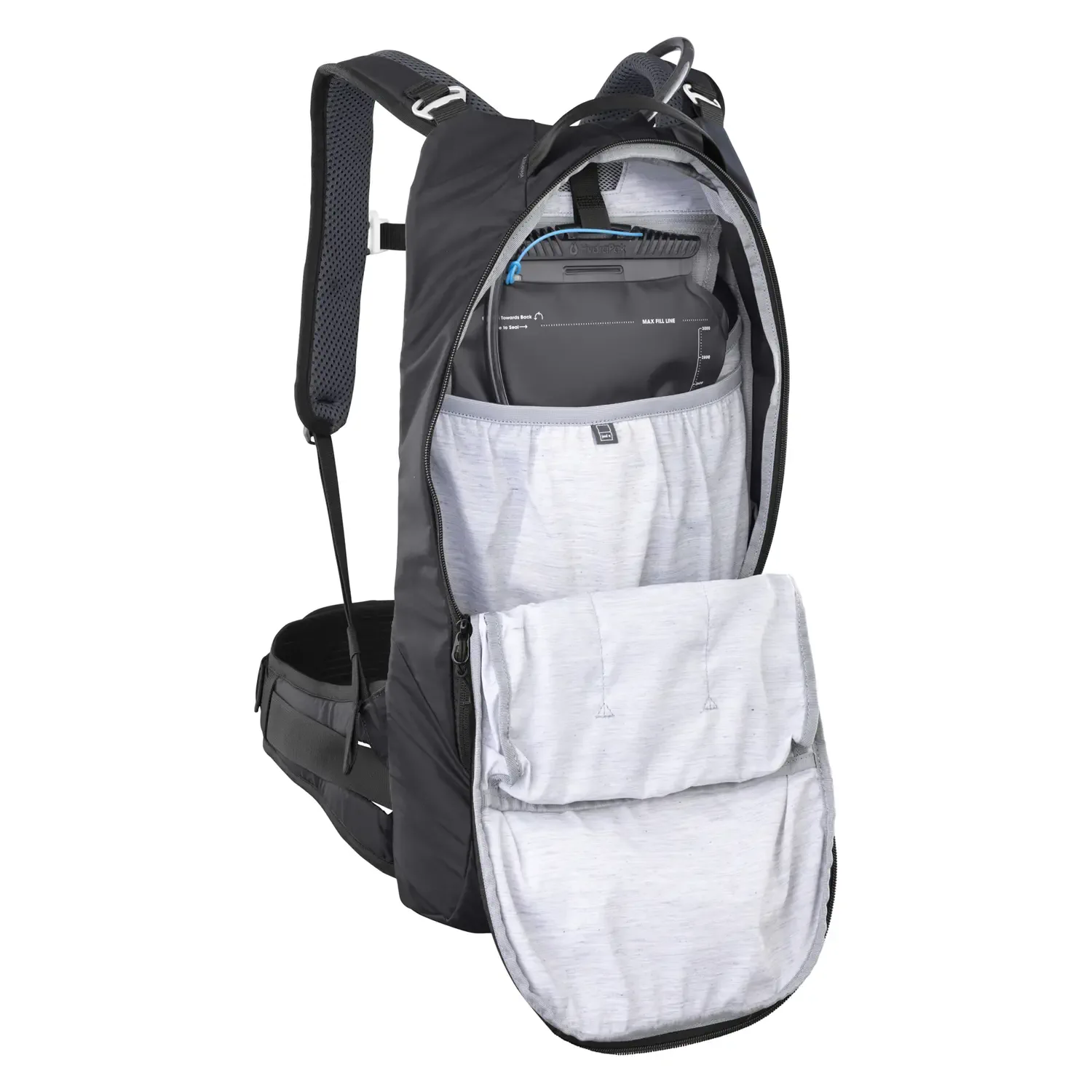 Pas biodrowy z regulacją umożliwia przeniesienie ciężaru z pleców na środek ciężkości ciała, angażując biodra i zmniejszając ryzyko bólu pleców. Plecak idealnie przylega do ciała, nie przesuwa się i nie ogranicza ruchów – nawet podczas dynamicznej jazdy enduro.