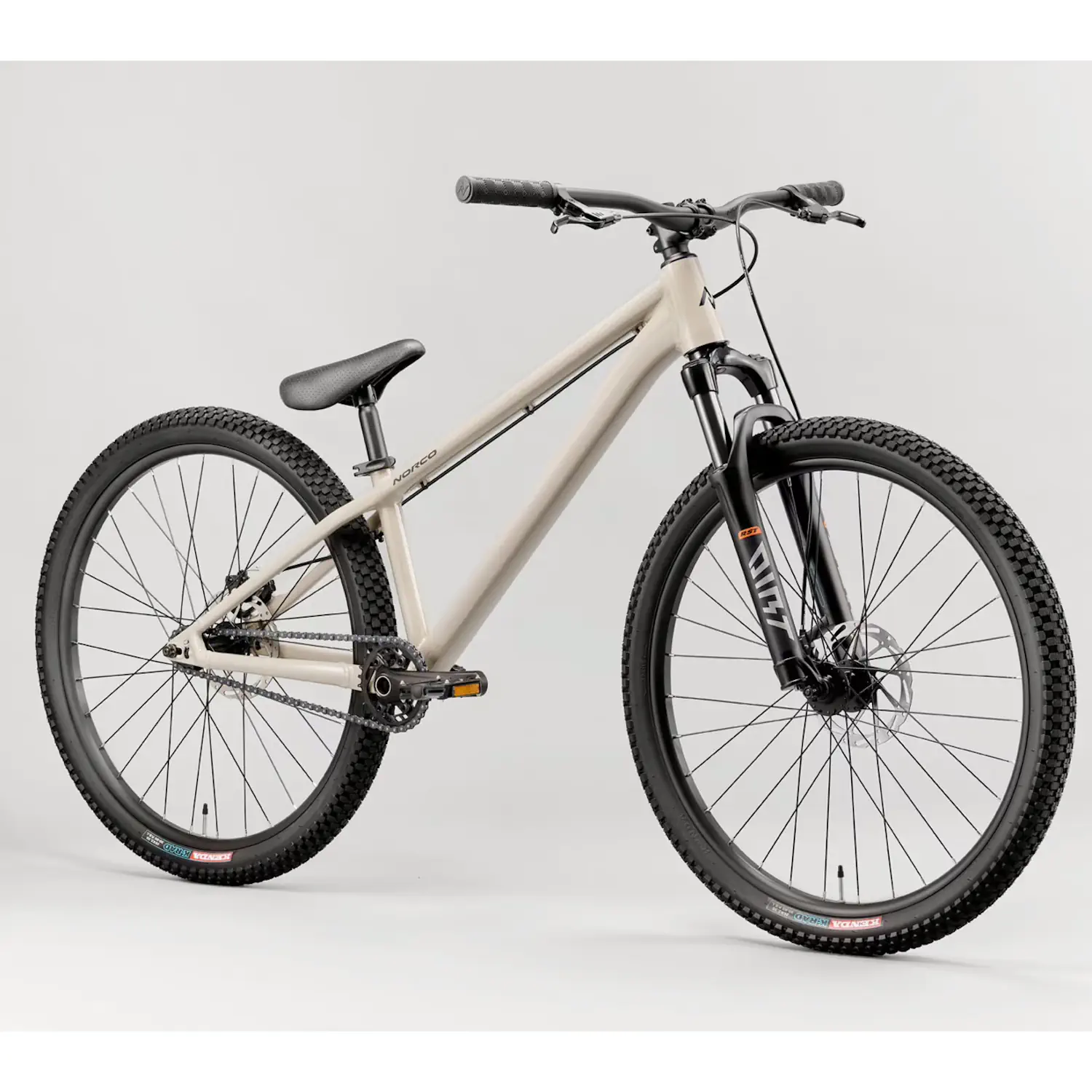 Norco Rampage 1 opiera się na solidnej ramie typu DJ wykonanej z aluminium, która łączy niską wagę z wysoką odpornością na przeciążenia. Geometria została zaprojektowana z myślą o dynamicznej jeździe i szybkiej reakcji na ruchy ridera. Rozmiar L zapewnia większą stabilność przy większym wzroście, bez utraty zwrotności charakterystycznej dla rowerów dirt. Amortyzator Manitou Circus Comp o skoku 100 mm skutecznie tłumi nierówności i wspiera kontrolę podczas lądowań. Całość konstrukcji została dopracowana tak, aby wytrzymać intensywną jazdę w skateparku i na dirtowych hopach.