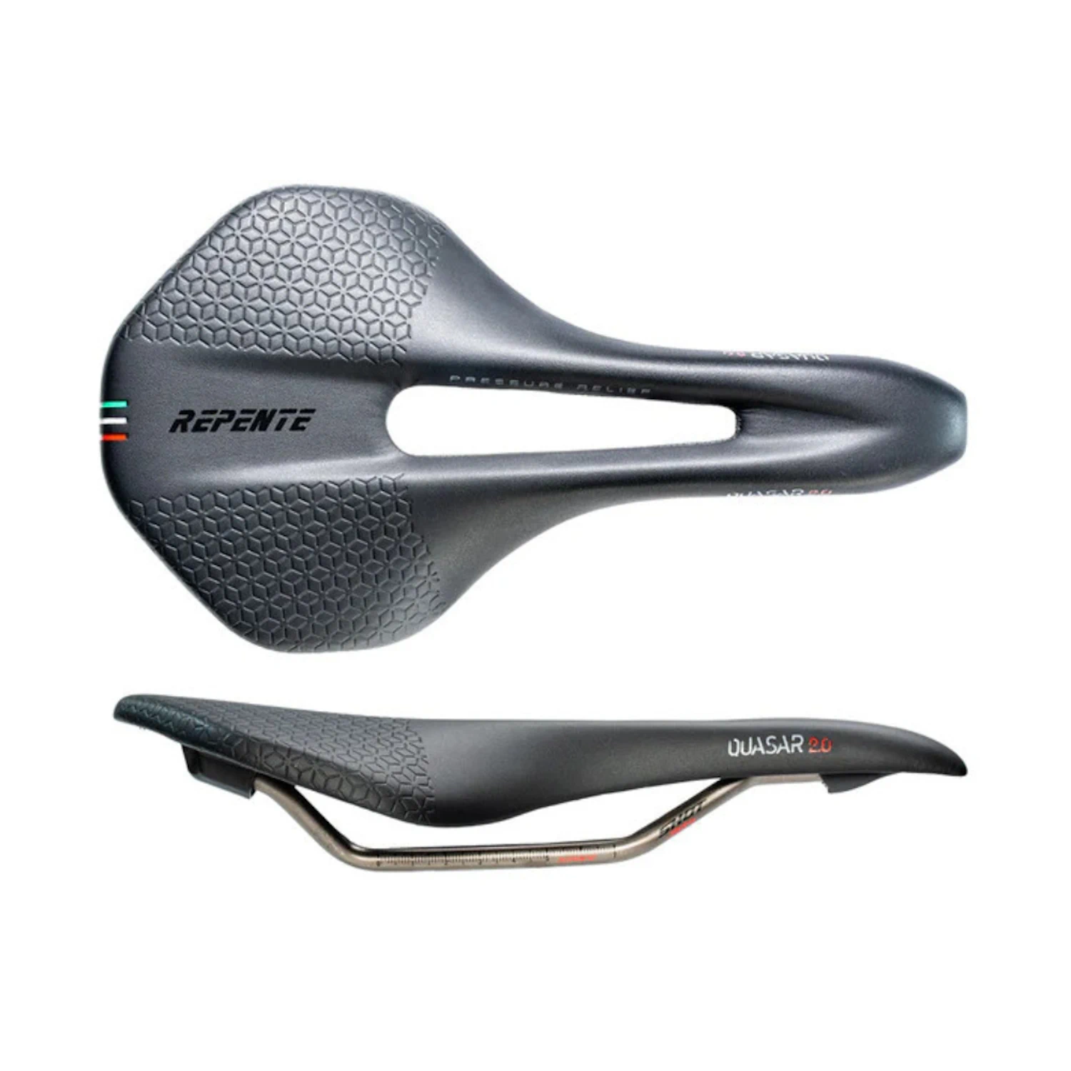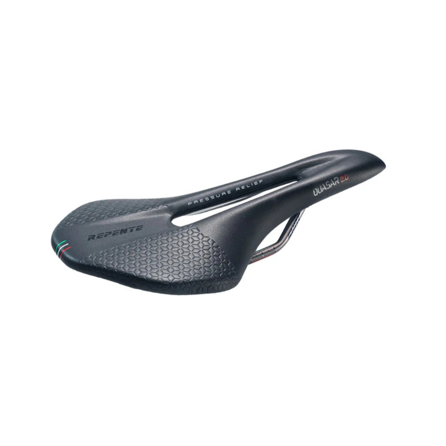 Siodełko rowerowe Repente Quasar 2.0 Shot 304 black to lekkie i nowoczesne siodełko rowerowe szosowe, łączące sportowy design z zaawansowaną konstrukcją. Model ważący poniżej 170 g oferuje wysoki komfort jazdy oraz optymalne wsparcie w pozycji wyścigowej.
