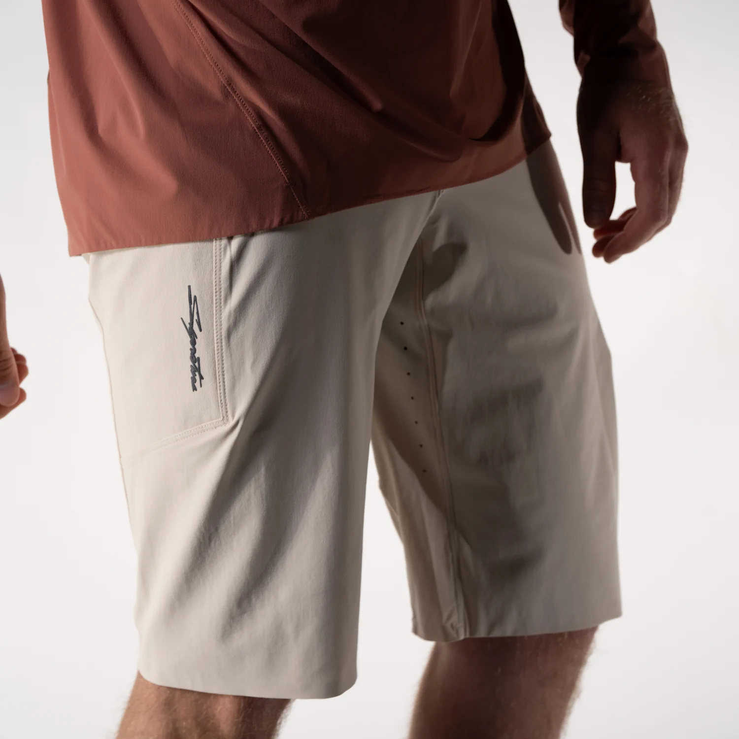Tkanina 5Blend zapewnia trwałość, lekkość i oddychalność, oferując wygodę w każdych warunkach MTB. Dopasowany krój wspiera mobilność i płynne ruchy. Kolor Whitecap Grey nadaje spodenkom elegancji i uniwersalności, czyniąc je doskonałym wyborem na szlak i poza nim.