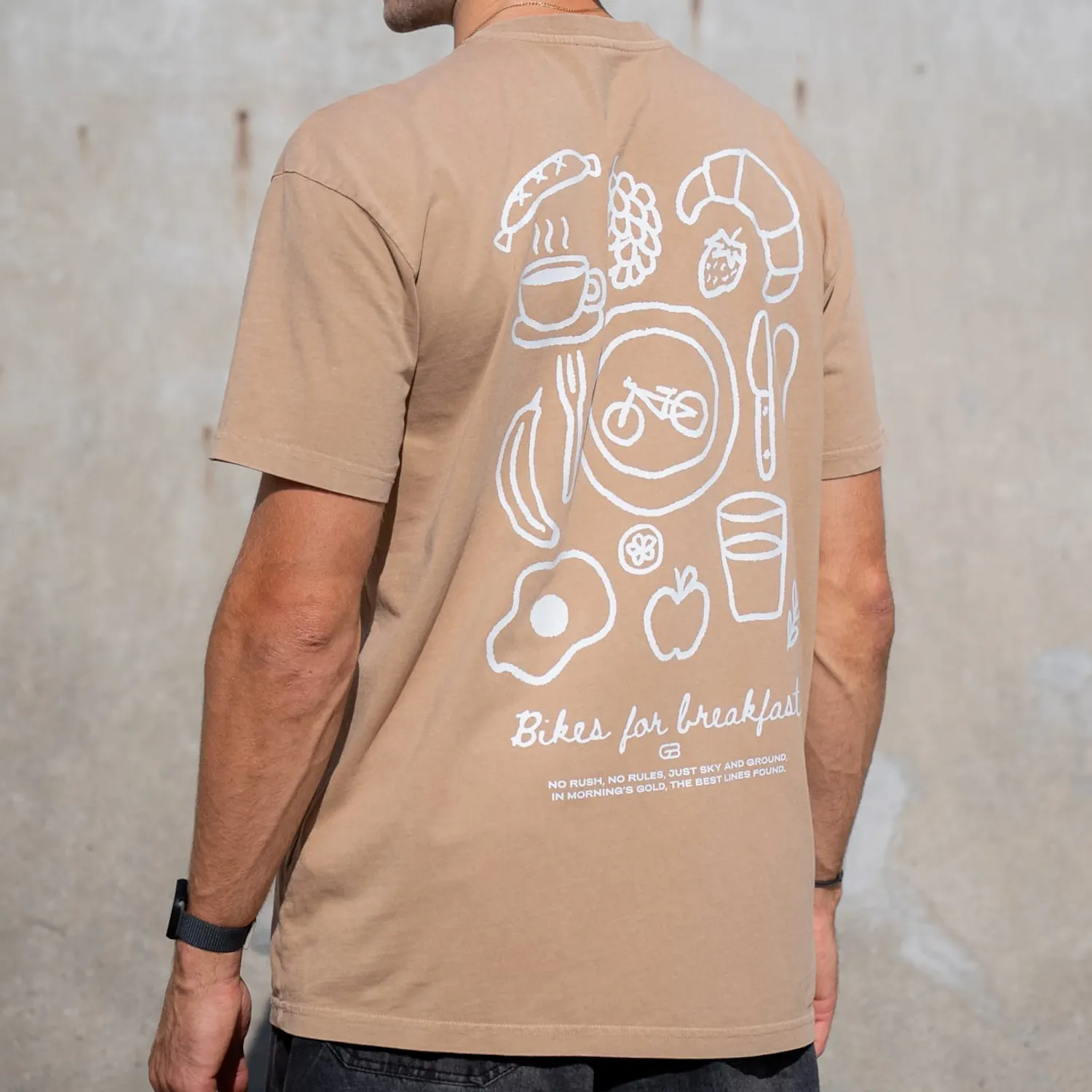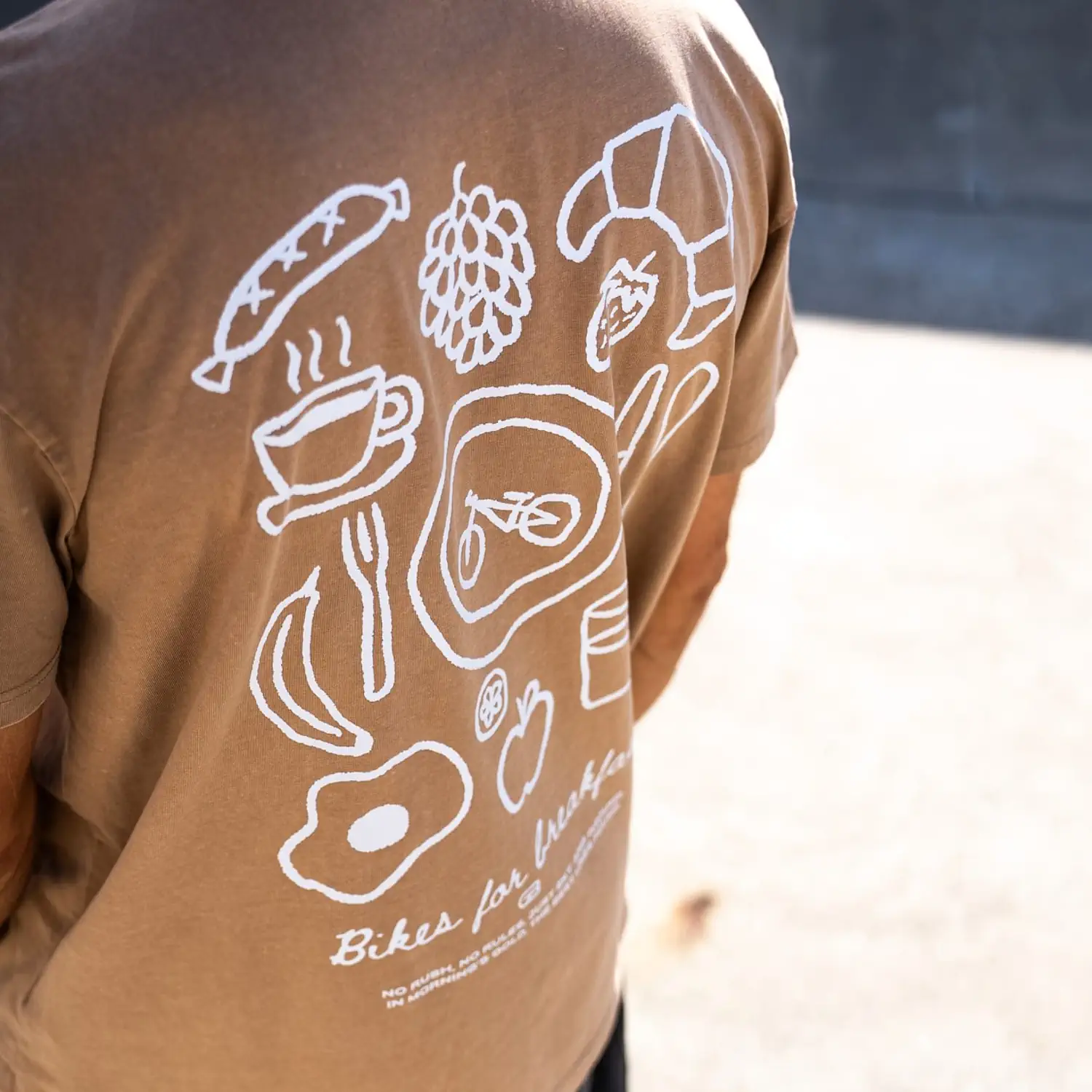 T-shirt Breakfast Washed Beige to koszulka inspirowana prostymi przyjemnościami – kawą, śniadaniem i jazdą na rowerze. Unikalny design oraz efekt sprania sprawiają, że każda sztuka ma swój indywidualny charakter. To idealny wybór dla osób, które cenią luz i styl związany z rowerowym lifestylem.