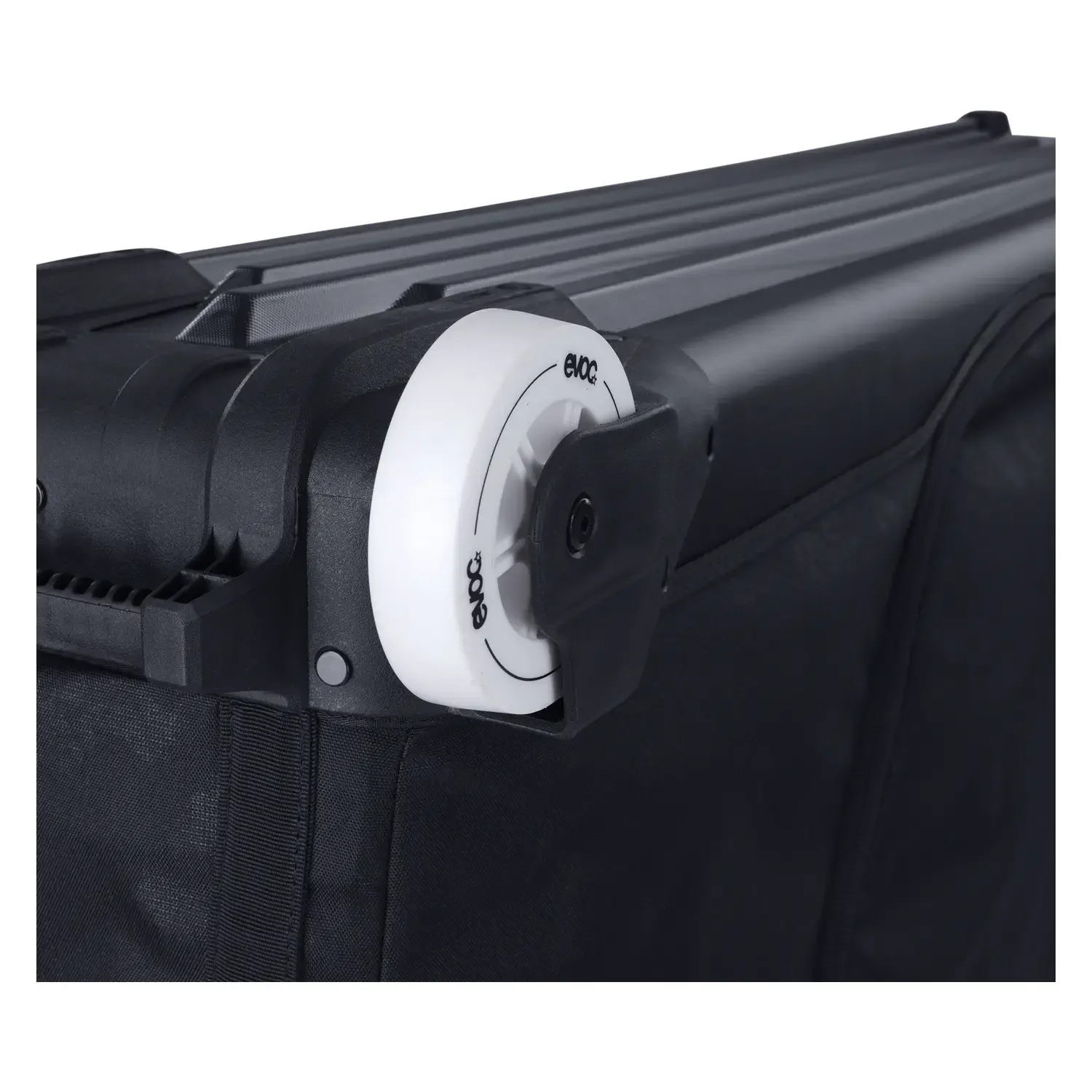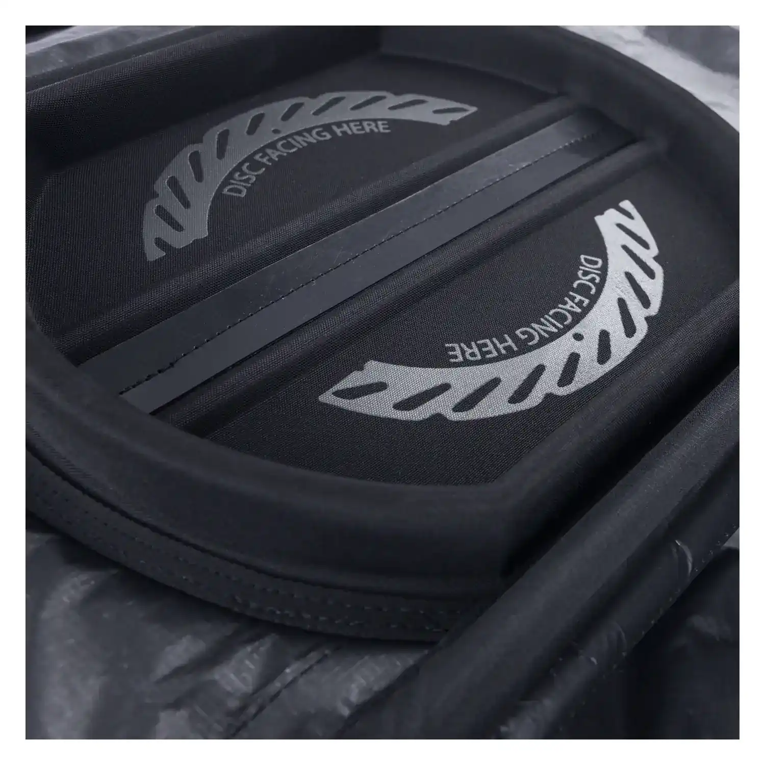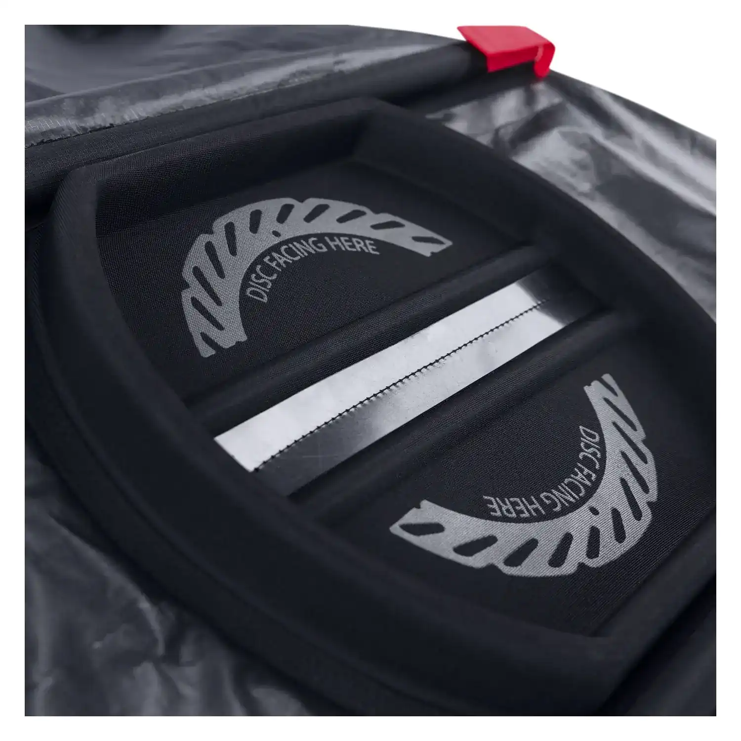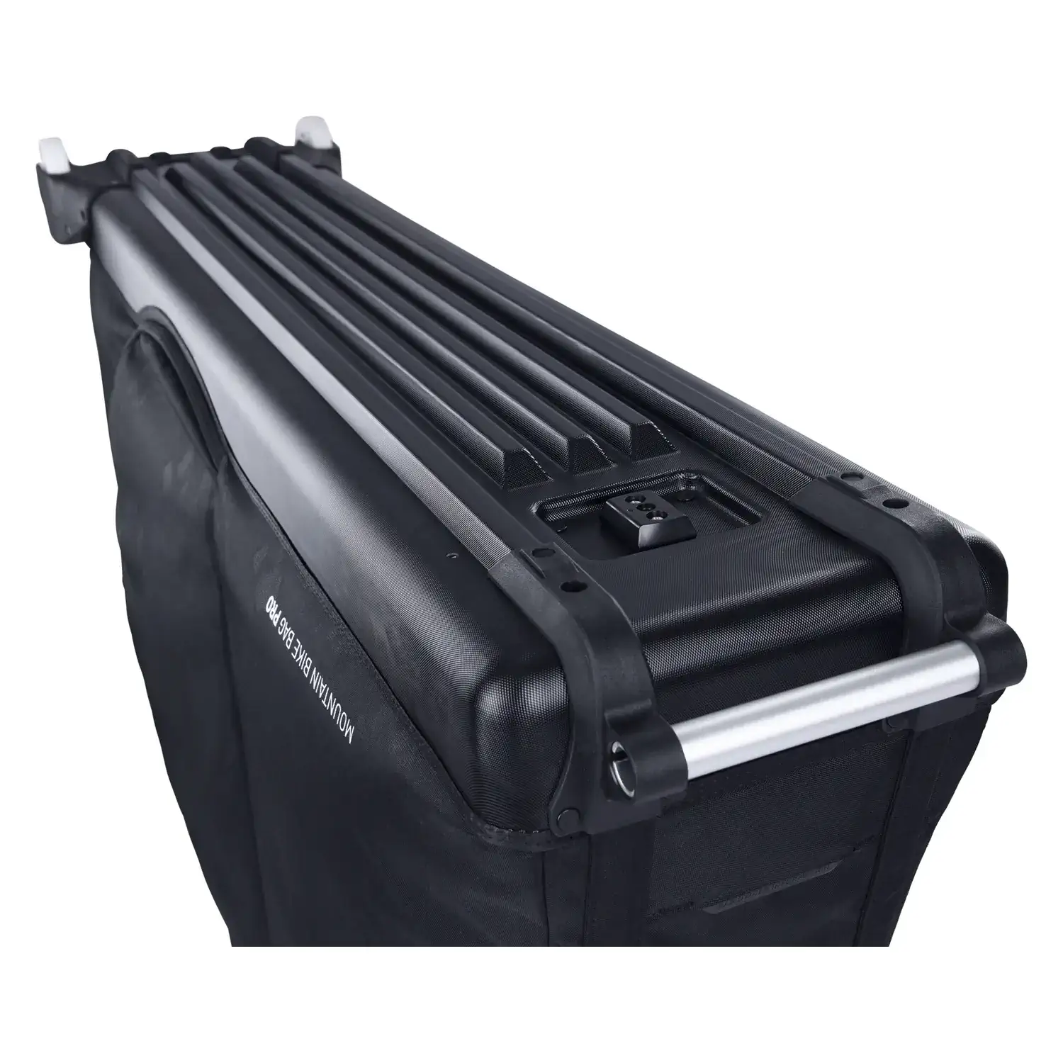Rdzeniem konstrukcji jest regulowany Bike Stand Pro, który utrzymuje ramę w stabilnej pozycji. Dzięki zastosowaniu twardej podstawy z poliwęglanu i miękkiej, odpornej powłoki tekstylnej, torba zapewnia pełną ochronę roweru o rozstawie osi do 130 cm. Dwa koła, pedały oraz inne akcesoria można łatwo zorganizować wewnątrz torby, a system kółek Clip-On Wheel 3.0 umożliwia płynne i ciche przemieszczanie się po lotniskach i dworcach.