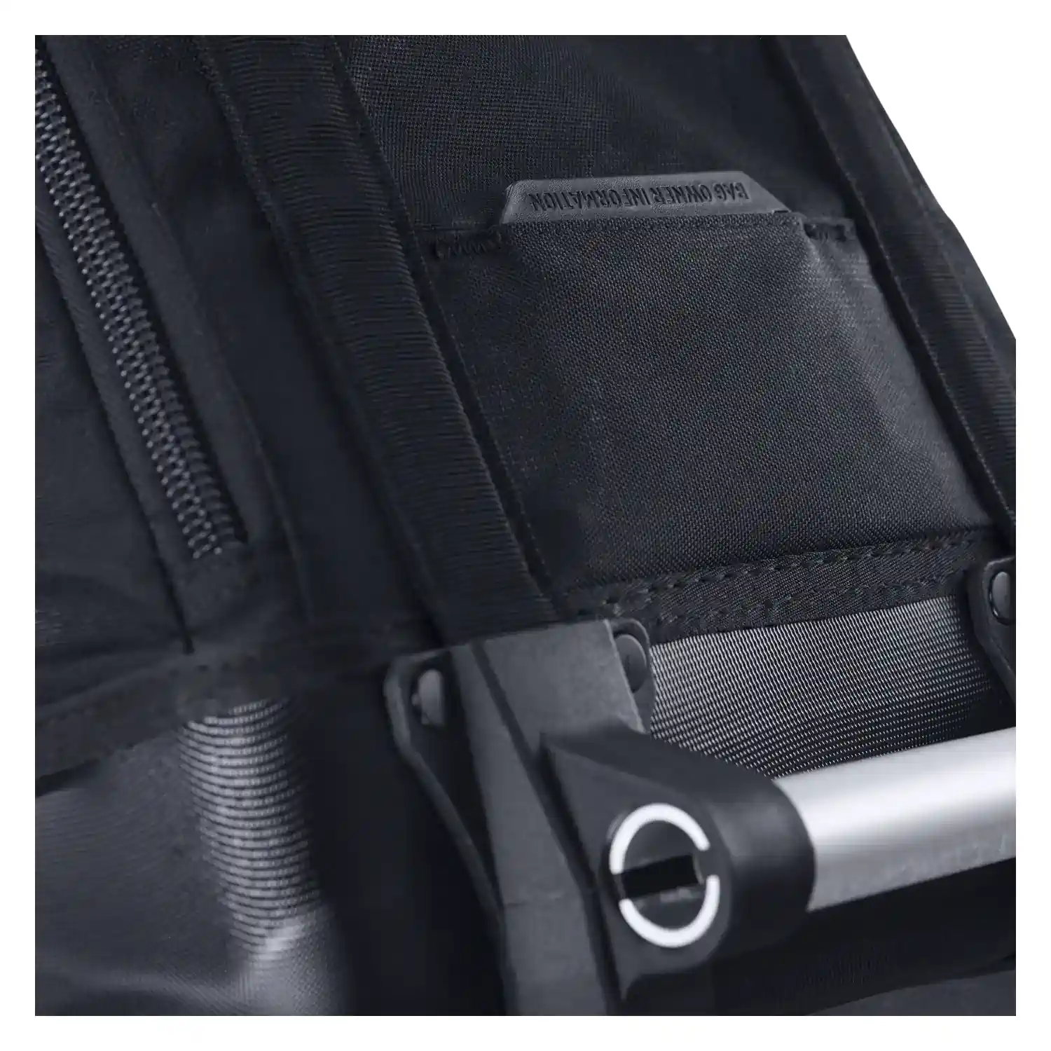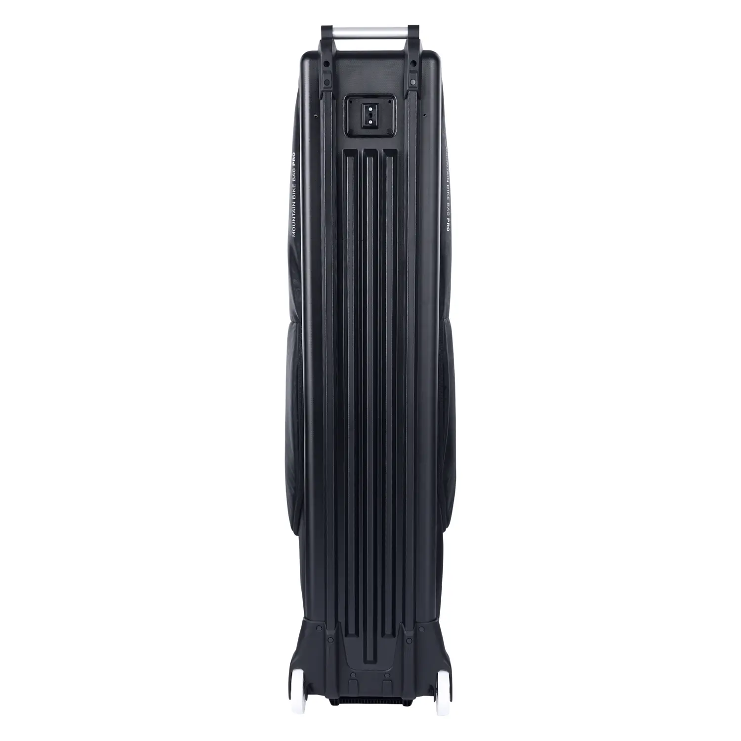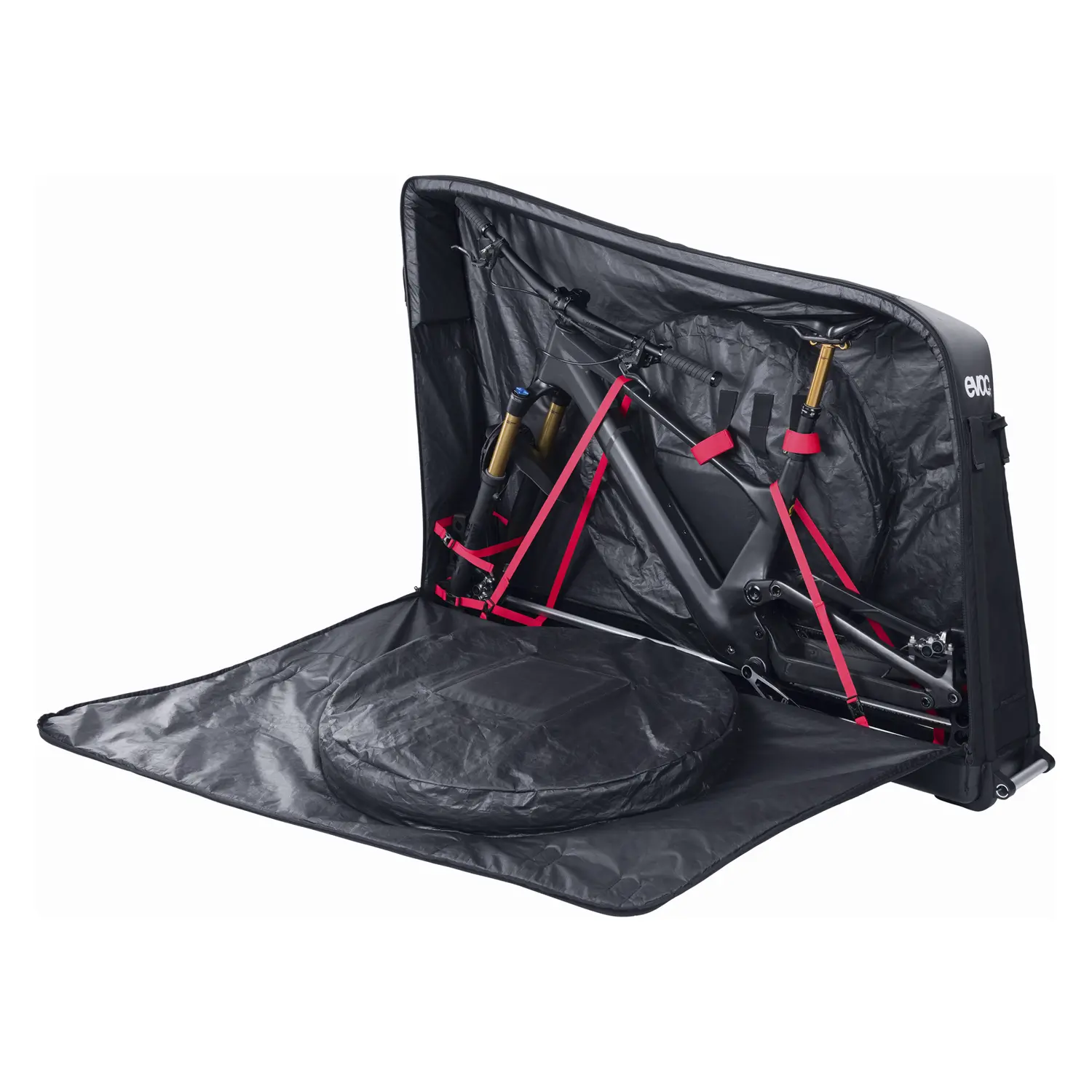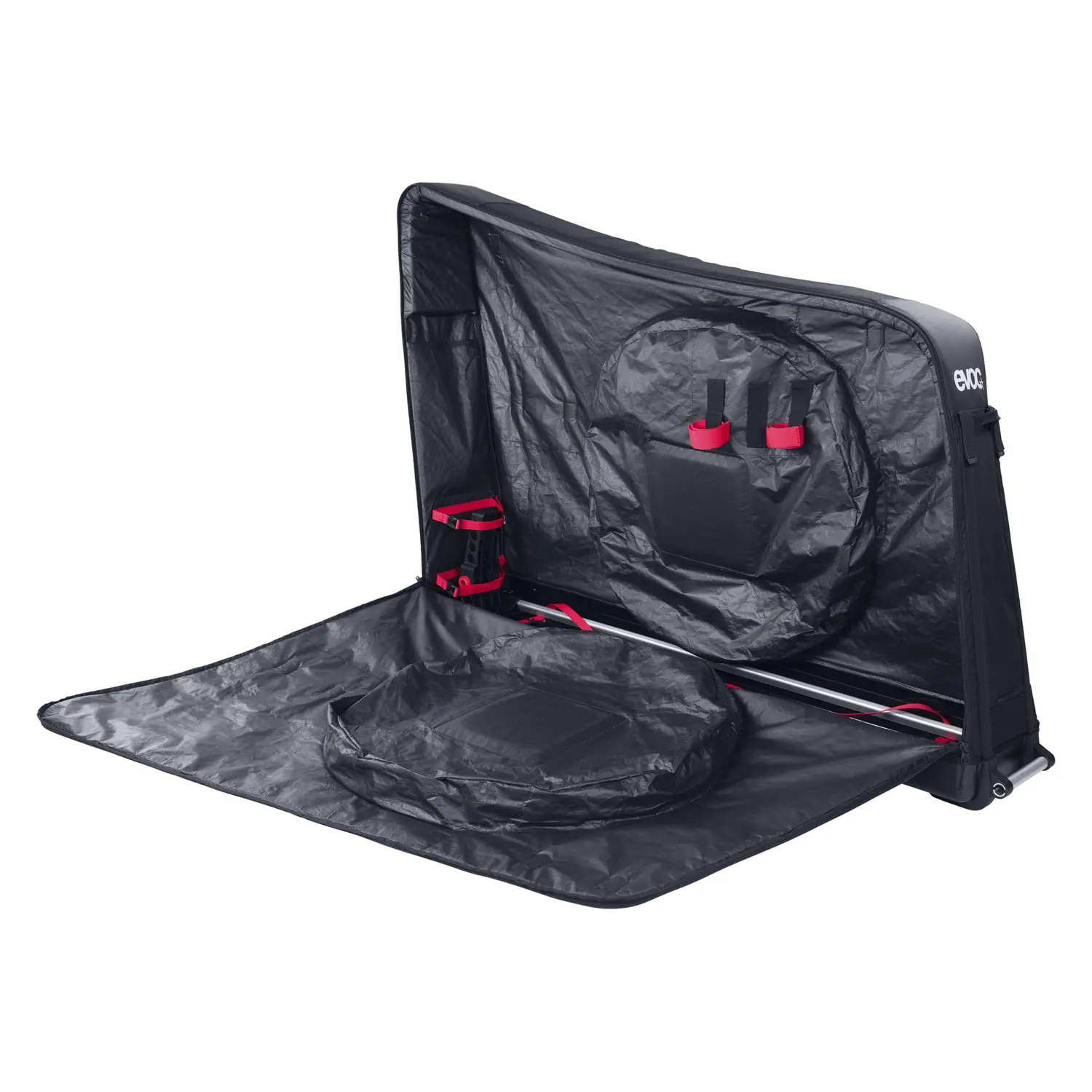 Rdzeniem konstrukcji jest regulowany Bike Stand Pro, który utrzymuje ramę w stabilnej pozycji. Dzięki zastosowaniu twardej podstawy z poliwęglanu i miękkiej, odpornej powłoki tekstylnej, torba zapewnia pełną ochronę roweru o rozstawie osi do 130 cm. Dwa koła, pedały oraz inne akcesoria można łatwo zorganizować wewnątrz torby, a system kółek Clip-On Wheel 3.0 umożliwia płynne i ciche przemieszczanie się po lotniskach i dworcach.