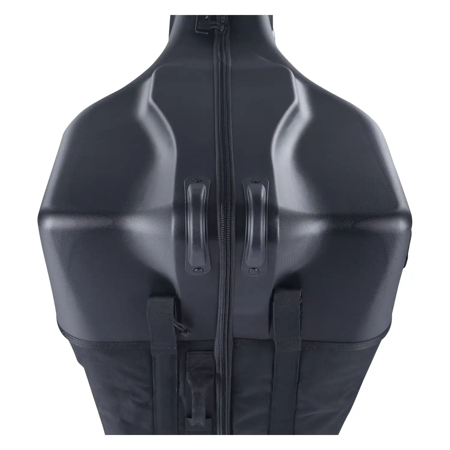 Torba ma kształt przestrzennej walizki z szerszą podstawą, co umożliwia łatwe ułożenie roweru bez konieczności demontażu całej konstrukcji. Dodatkowe elementy wzmacniające zapobiegają deformacjom podczas transportu.