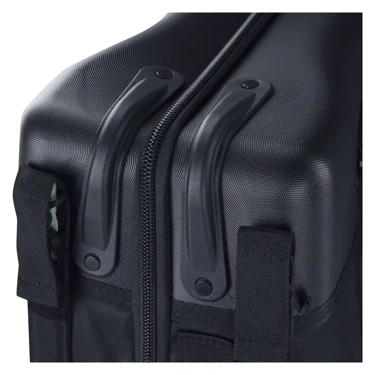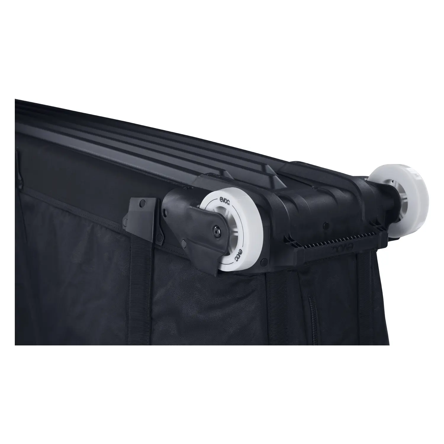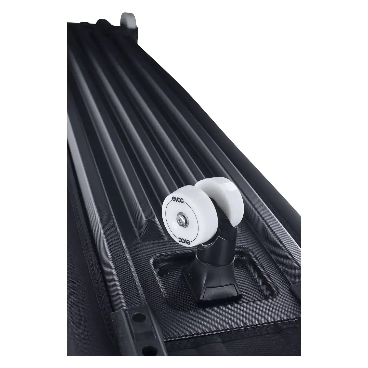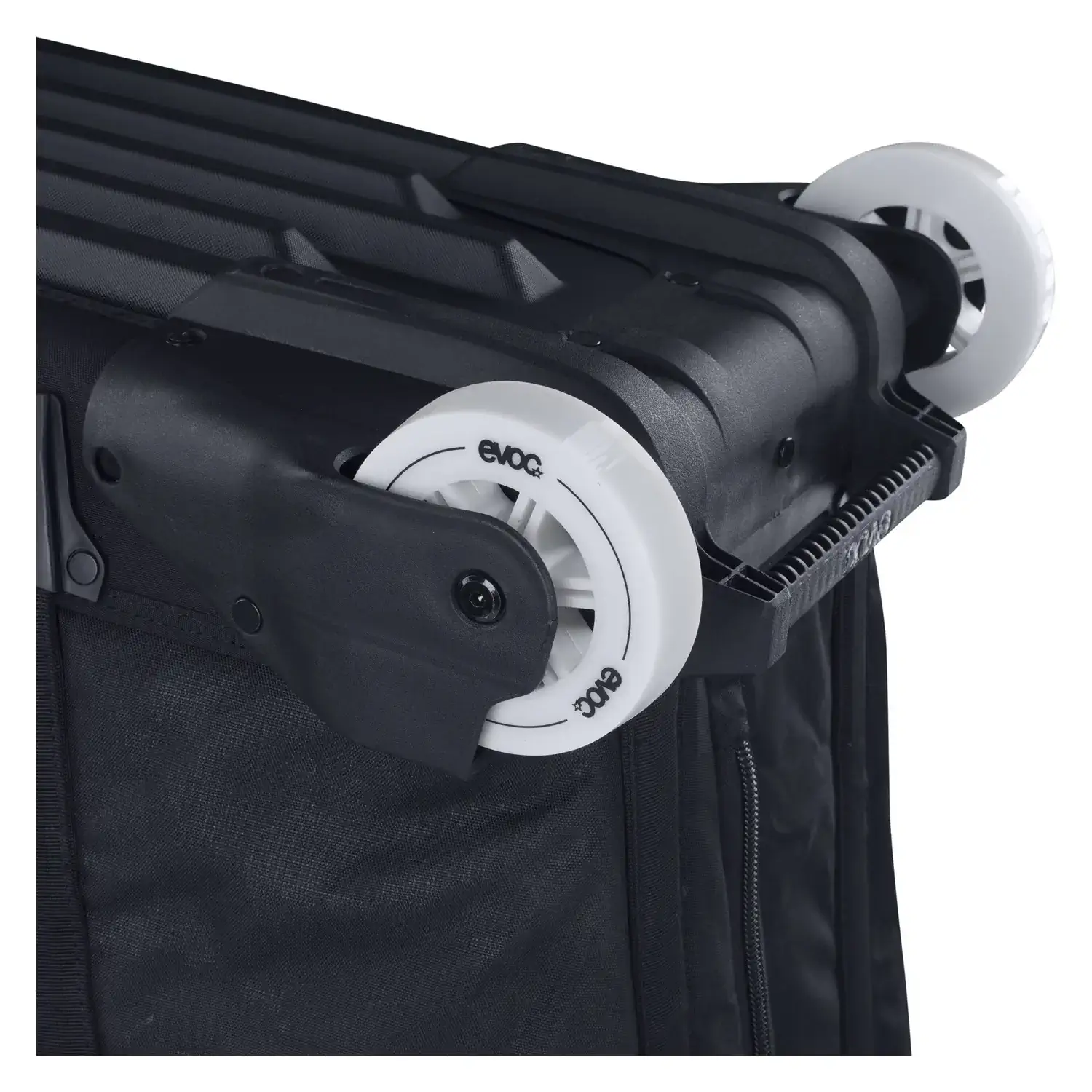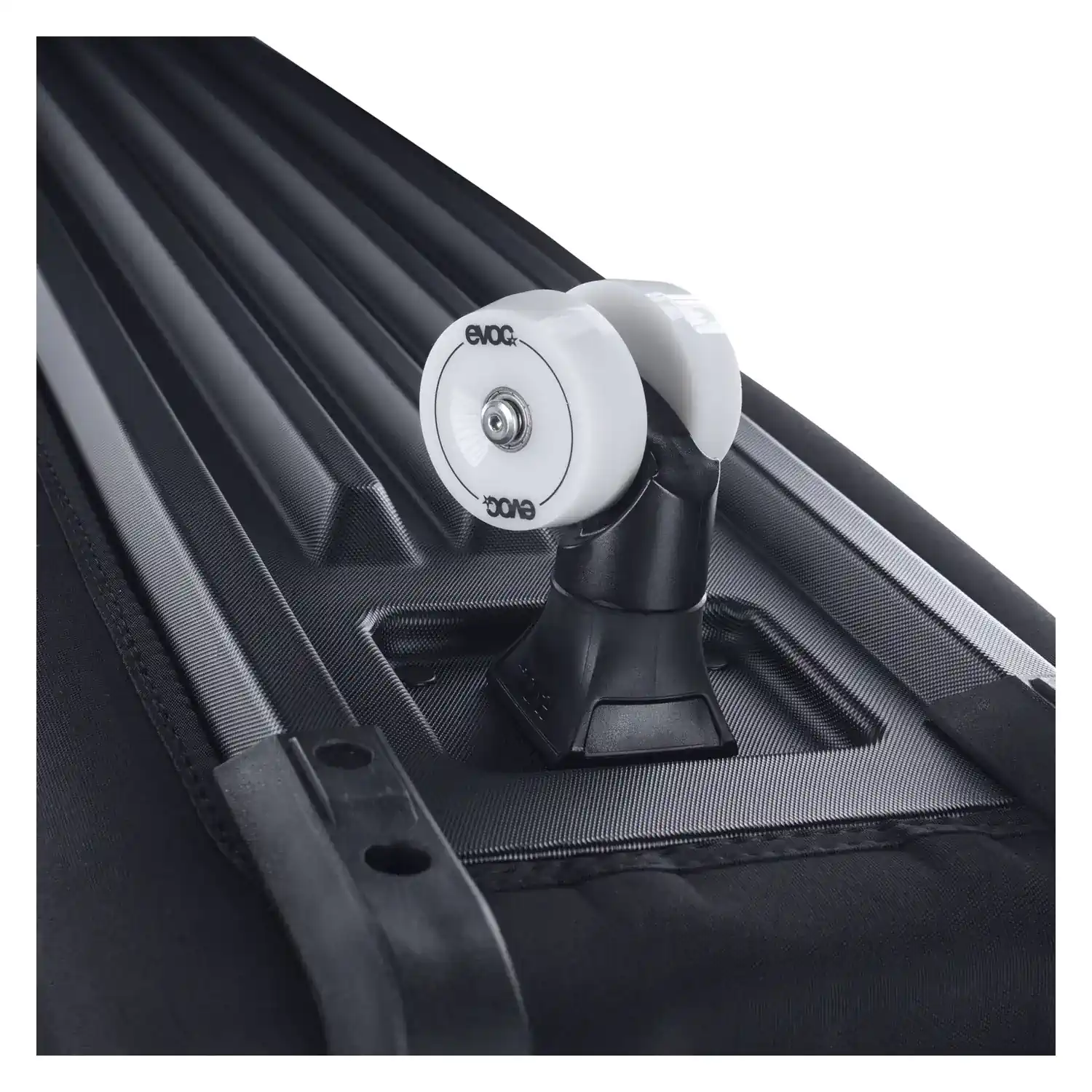 EVOC Road Bike Bag Pro została wykonana z wytrzymałej tkaniny odpornej na przetarcia, wilgoć i uszkodzenia mechaniczne. Korpus torby to połączenie tworzywa sztucznego, lekkiej pianki ochronnej oraz powlekanej tkaniny P600D PU, co gwarantuje doskonałą ochronę w czasie podróży.