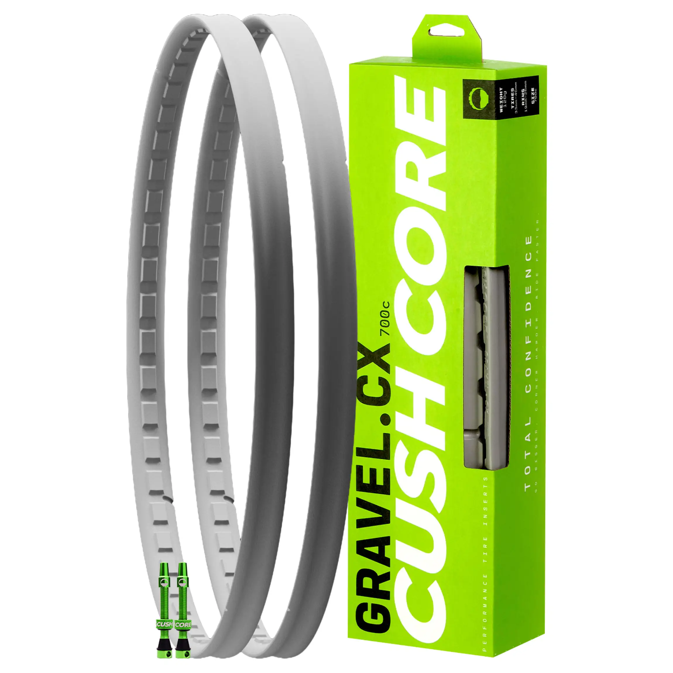 | Więcej o produkcie | CushCore Tire Insert Gravel Set – ultralekkie wkładki do gravela 700c. Większy komfort, lepsza kontrola i ochrona obręczy. Zawory 44 mm w zestawie. |