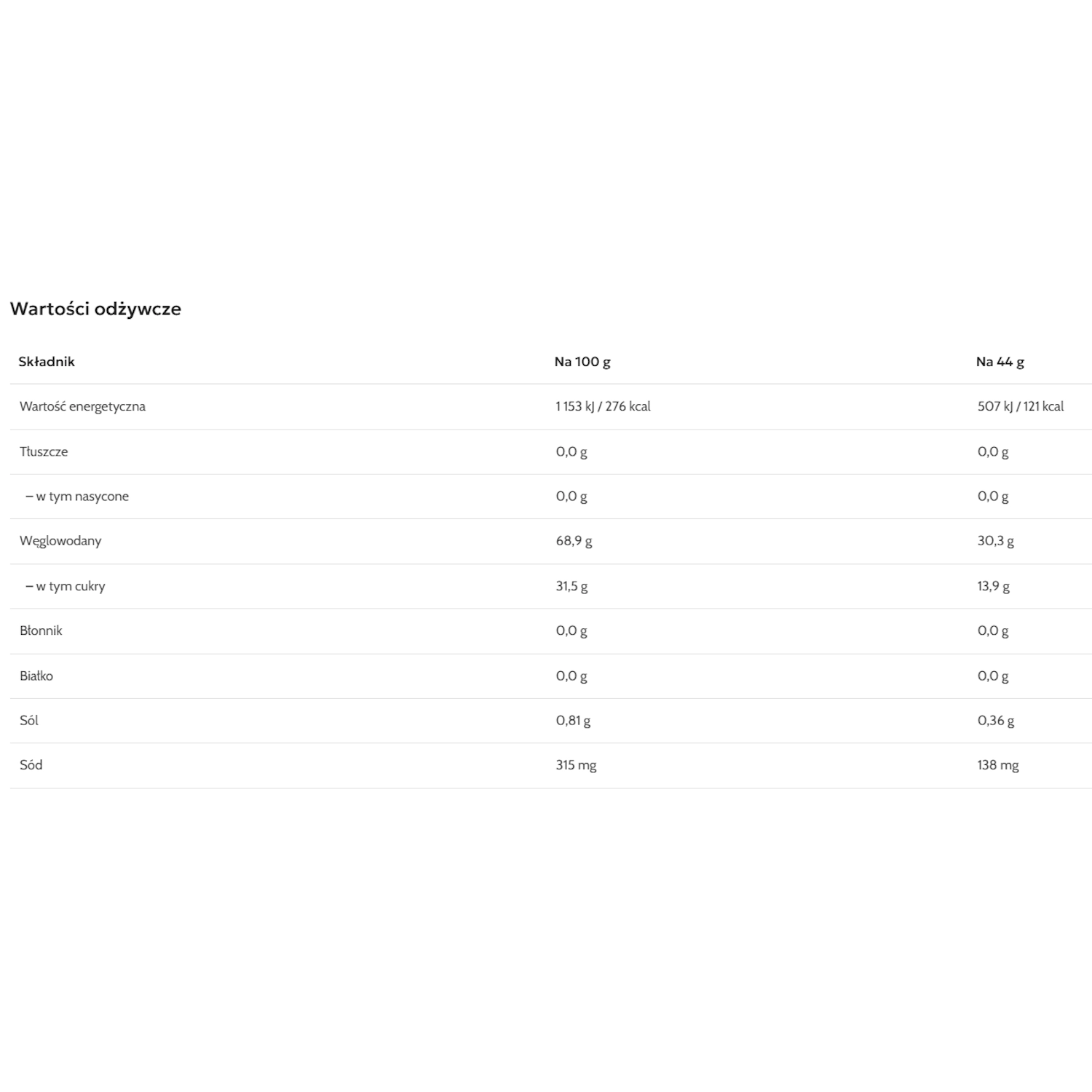 Obecność sodu pomaga utrzymać równowagę elektrolitową oraz wspiera nawodnienie, co ma szczególne znaczenie przy długotrwałym wysiłku. Dodatkowo płynna konsystencja sprawia, że żel jest wygodny do spożycia nawet w ruchu. Produkt posiada certyfikat Cologne List oraz wyróżnia się prostym składem – nie zawiera glutenu, sztucznych barwników ani alergenów i jest odpowiedni dla wegan.