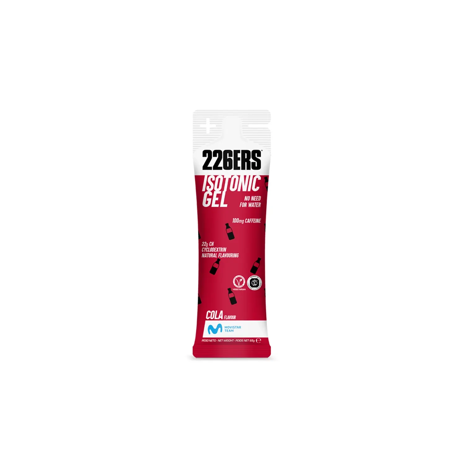 ISOTONIC GEL 226ERS to żel energetyczno-nawadniający o izotonicznej formule, łączący maltodekstrynę, cyklodekstrynę (Cluster Dextrin®) oraz fruktozę. Zapewnia szybkie i stabilne dostarczanie energii, dostarczając 22 g węglowodanów w porcji. Nie wymaga popijania wodą, co zwiększa wygodę podczas wysiłku. Wariant CAFFEINE COLA.